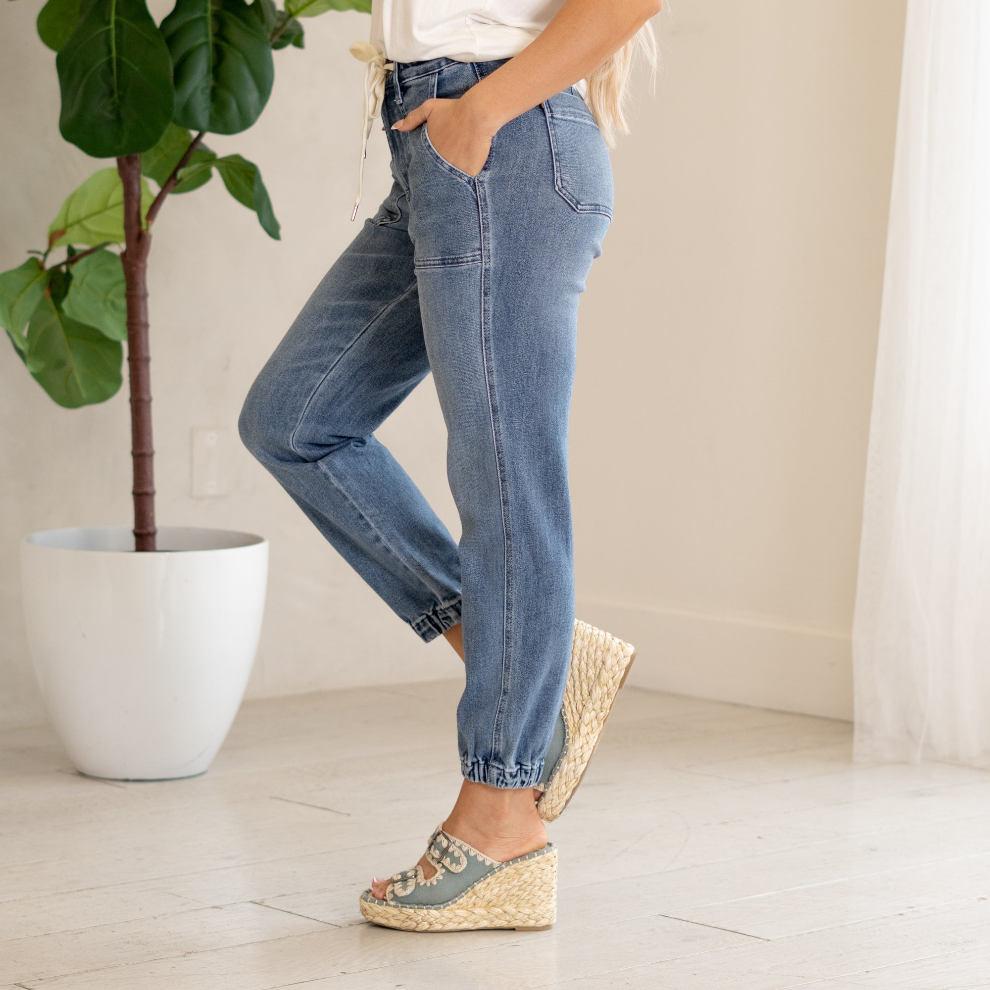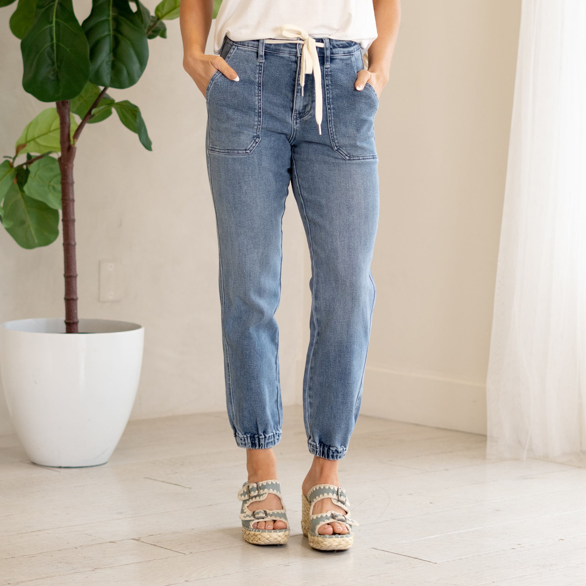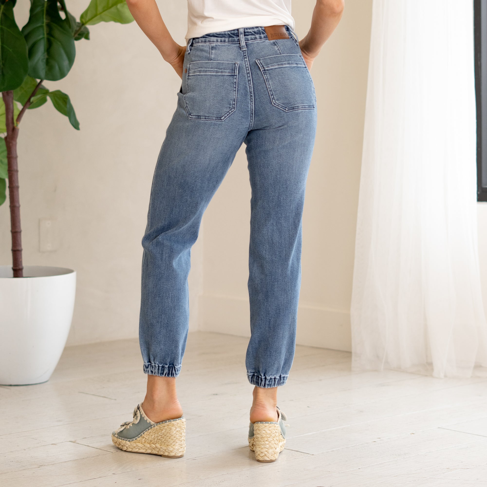 Judy Blue jeans and shorts are made to move with you. Designed with stretch, structure, and curve-hugging comfort, they flatter every shape. Most shoppers size down one full size in stretchy styles, and many plus-size shoppers love the flex and recovery built into every pair.