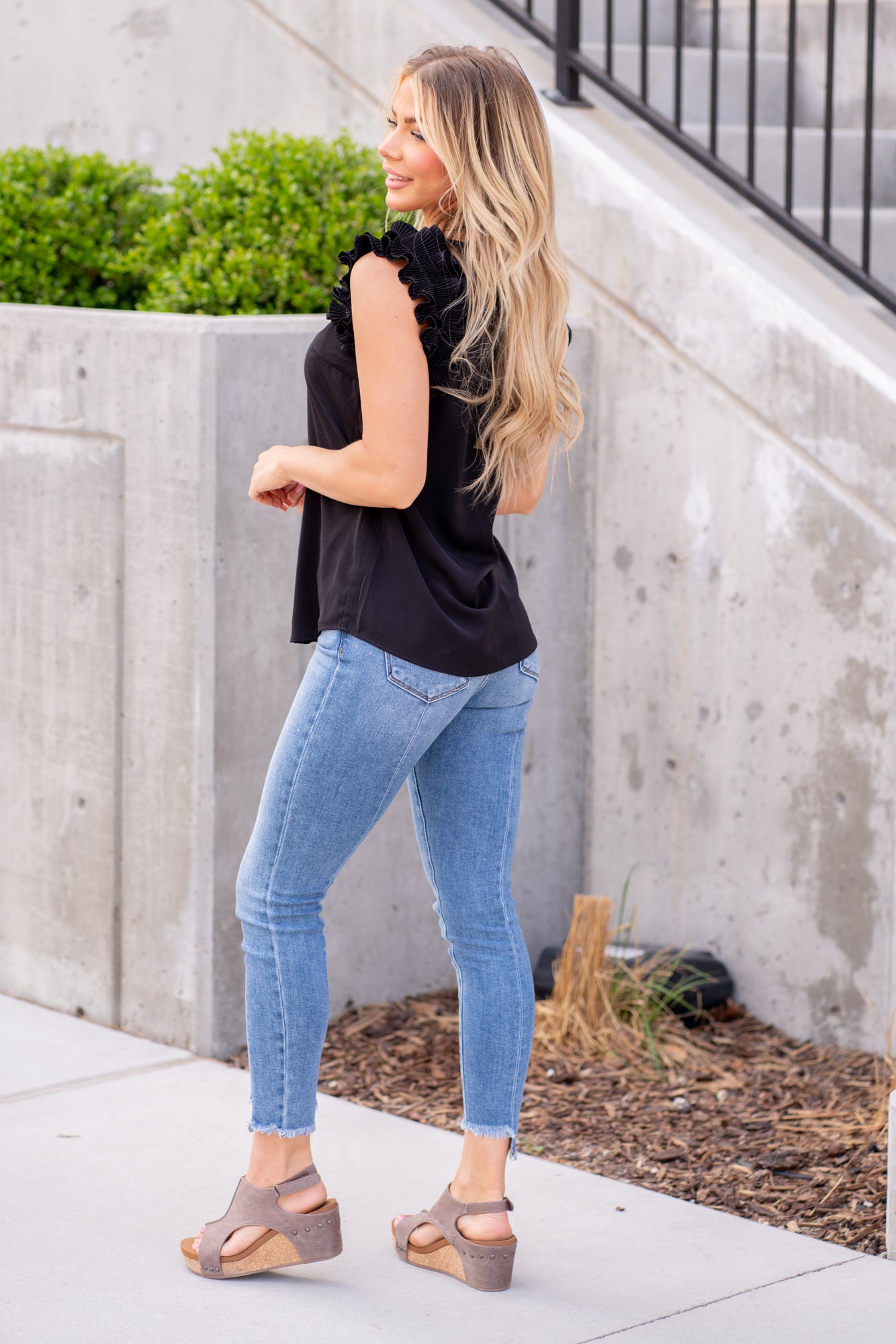 Watkins Mid Rise Fray Hem Ankle Skinny