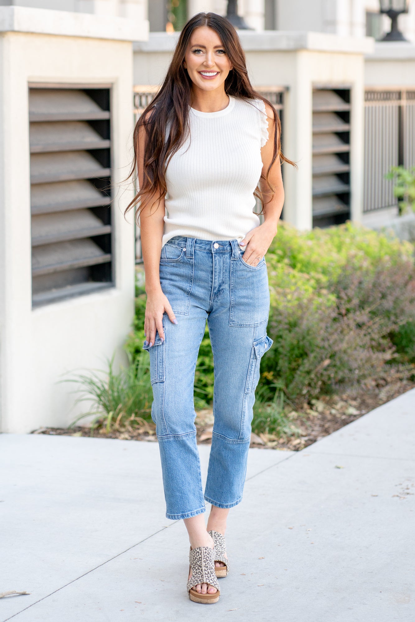 Risen Bella Mid Rise Straight Fit Jeans Medium Blue Wash