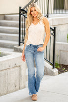 They sit just above the waistline and flare out down your leg, creating that far-out silhouette we all dig. With a raw-edged hem, classic 5-pocket style, and a hook-and-eye closure, these jeans are all about peace, love, and comfort. So forget about the war, man—embrace the denim revolution with the Jennie Wide-Legged Jeans!