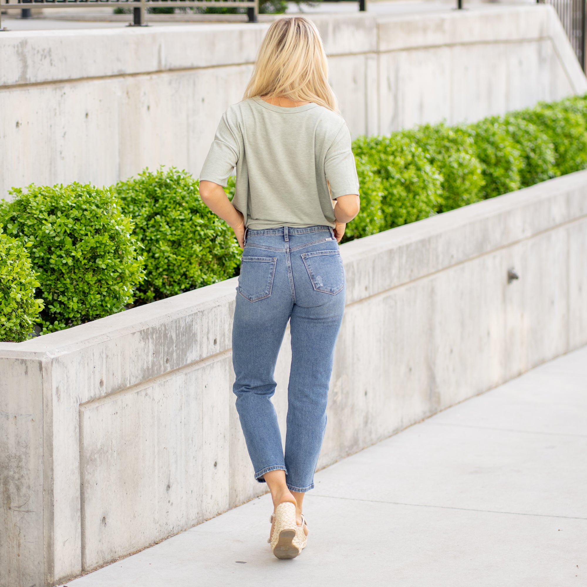 Newport High Rise Cuffed Button Fly Mom Jeans