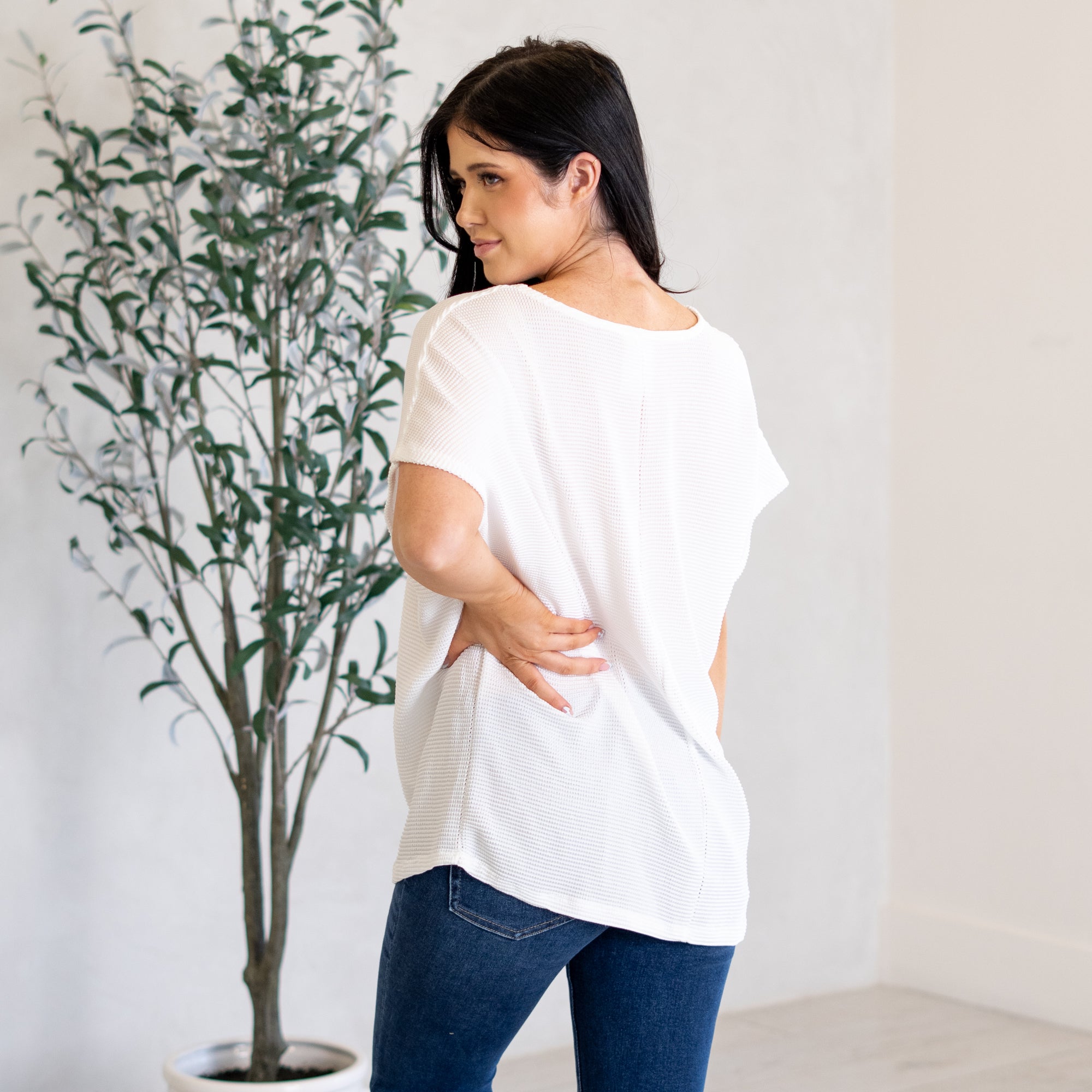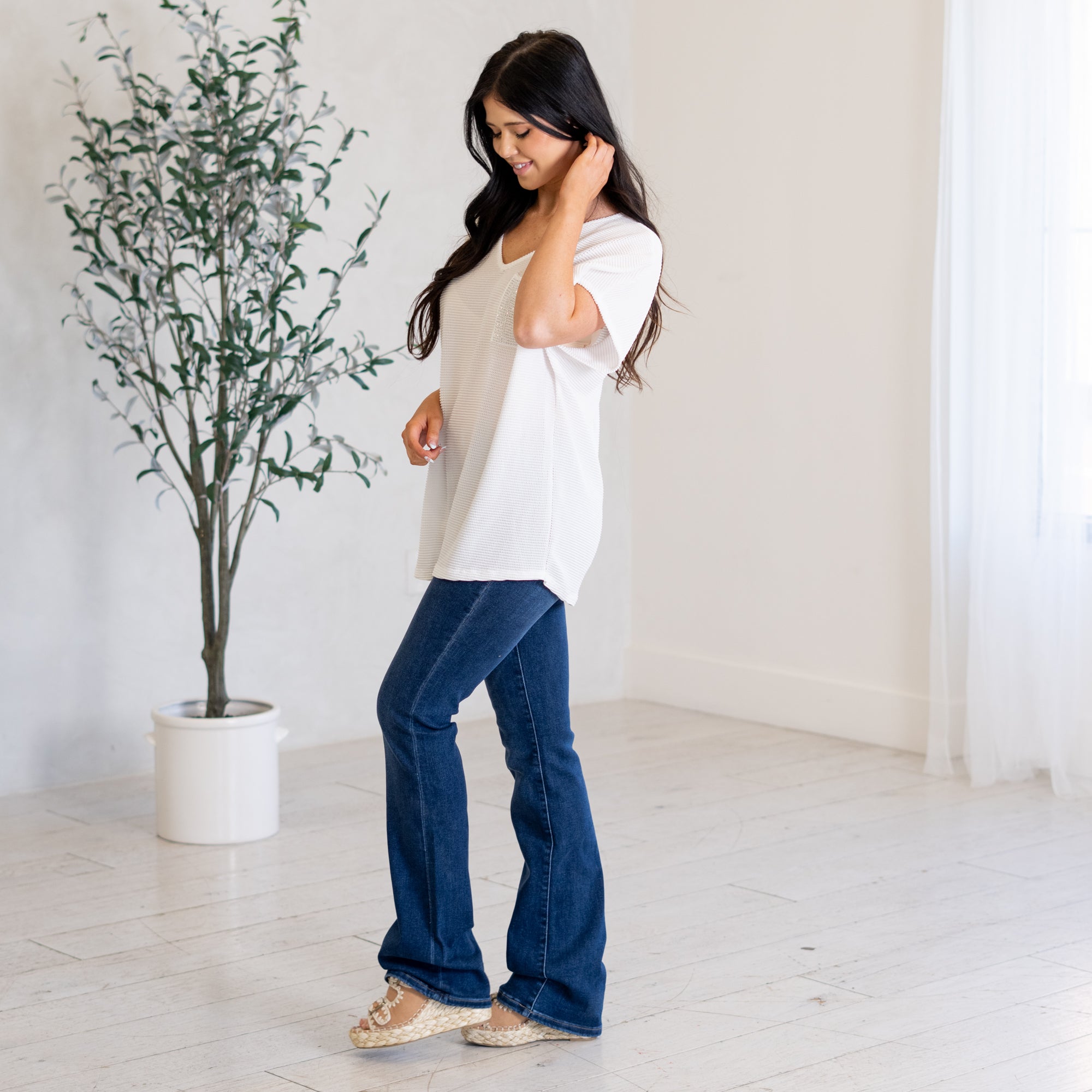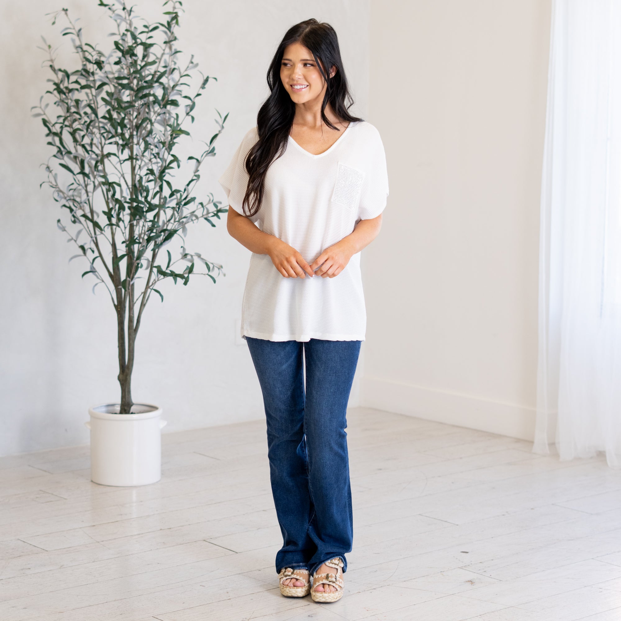 Sparkle Pocket V Neck Top