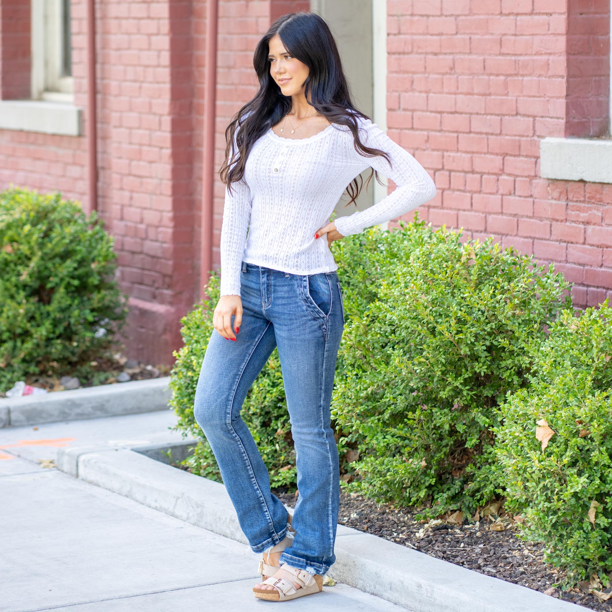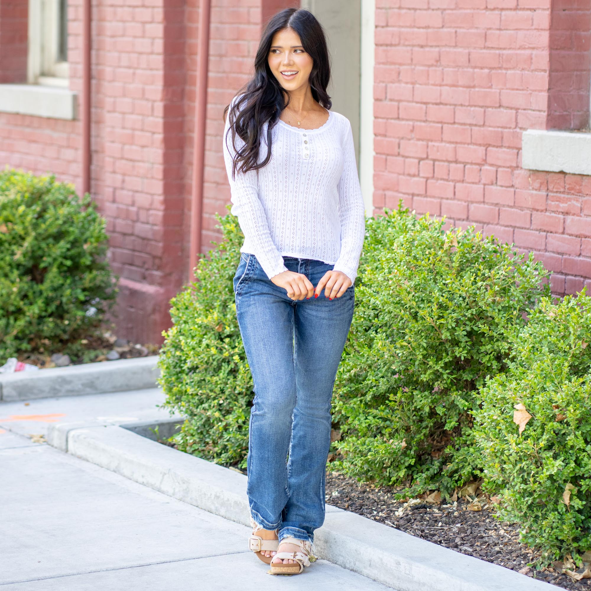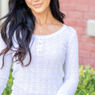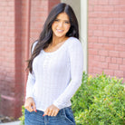 The Eloise Pointelle Knit Henley Sweater Top brings effortless charm to your wardrobe. Crafted with delicate pointelle knit detailing, this piece combines cozy texture with a lightweight feel that’s perfect for layering or wearing on its own. The scoop neckline adds a flattering touch, while the classic Henley button front gives it a casual, laid-back vibe.