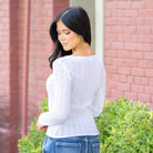 Hem & Thread Eloise Pointelle Knit Henley Sweater Top White
