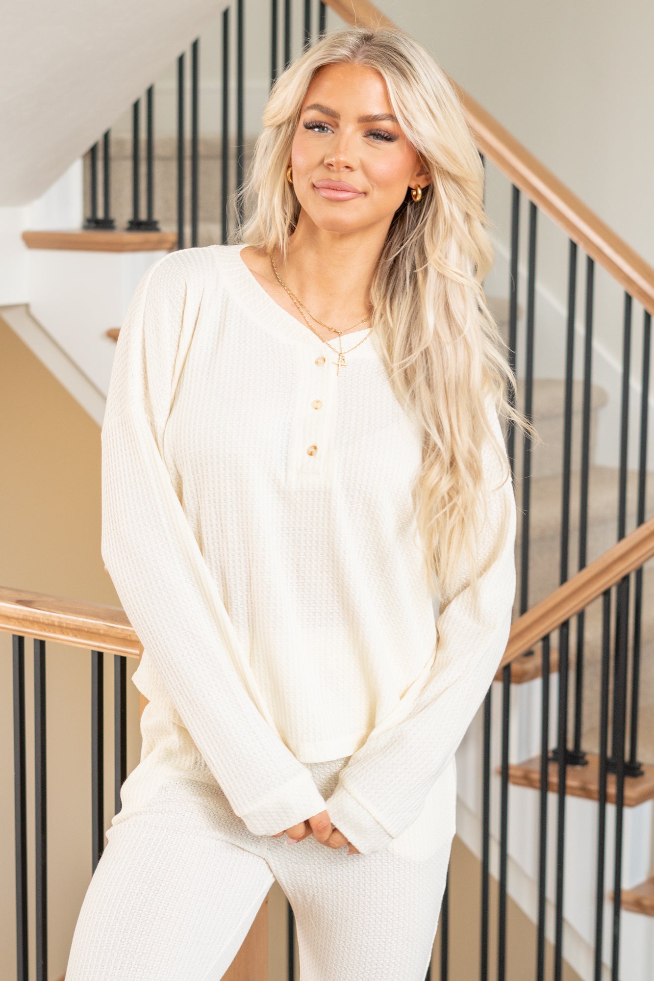 Dolly Waffle Knit Two Piece Set - Stone