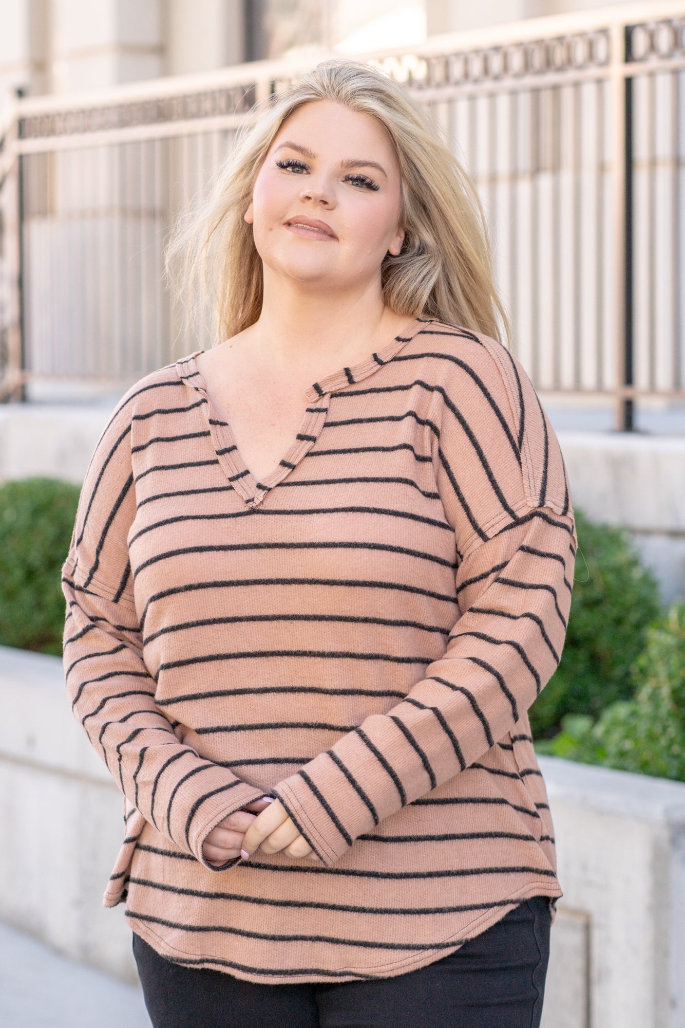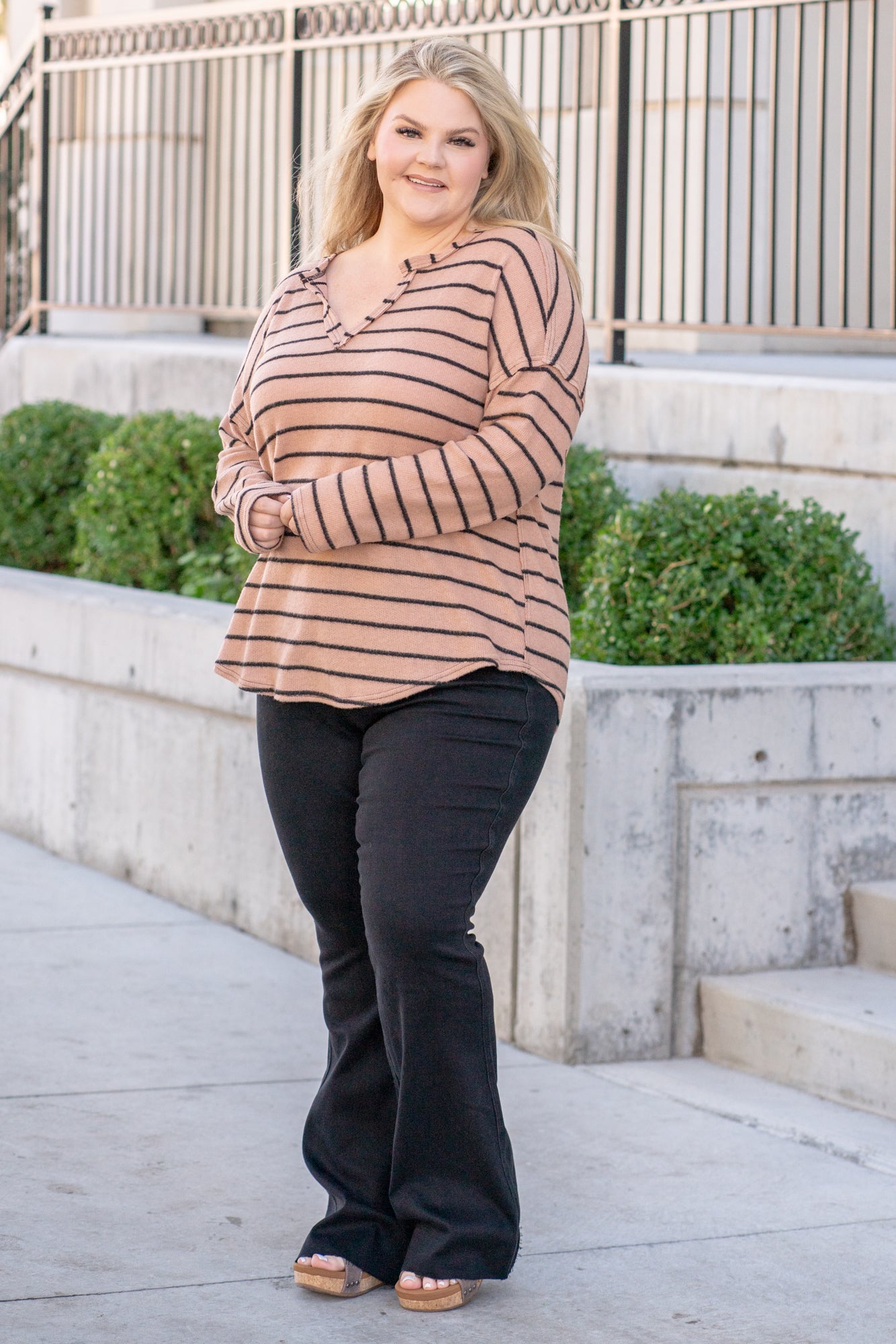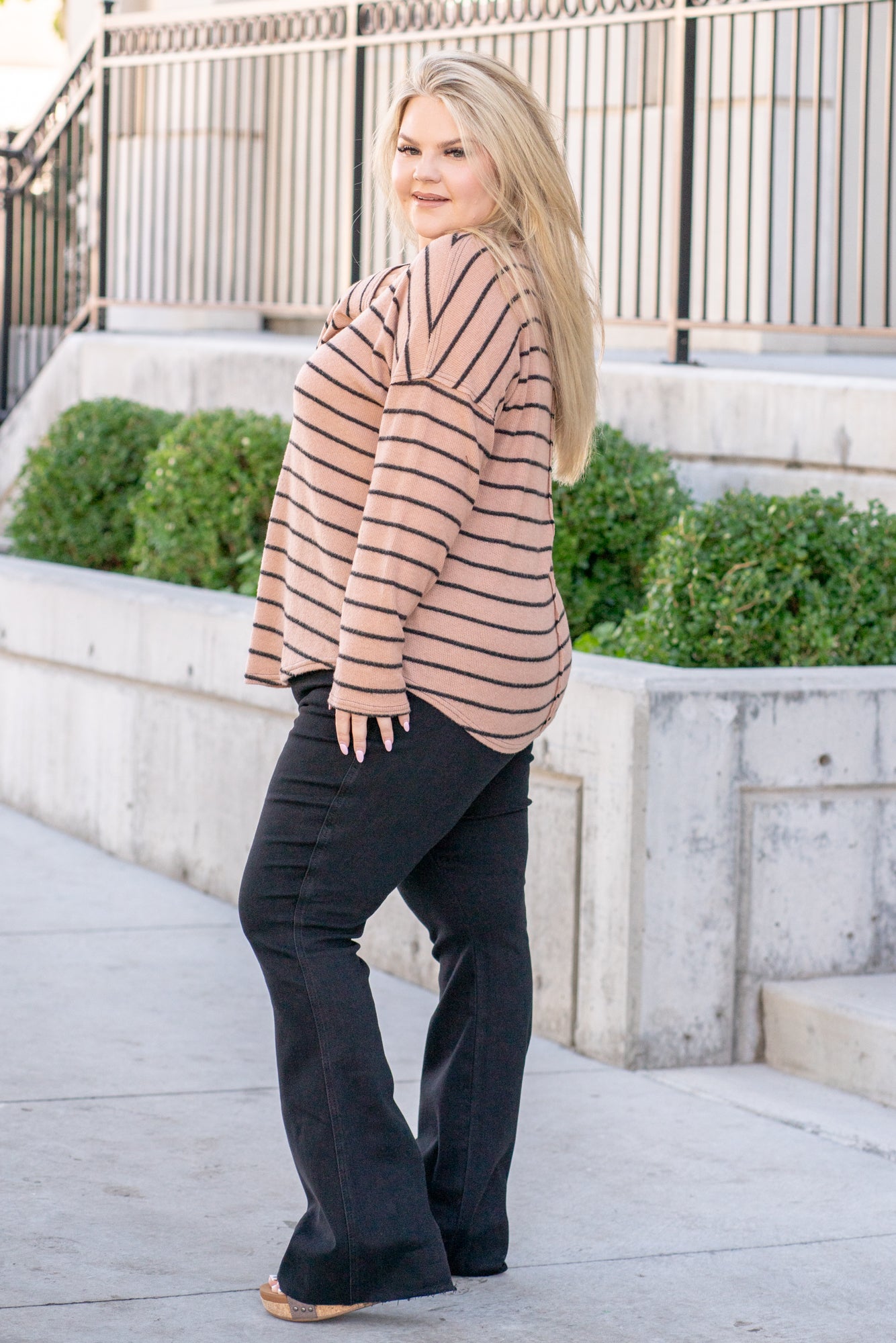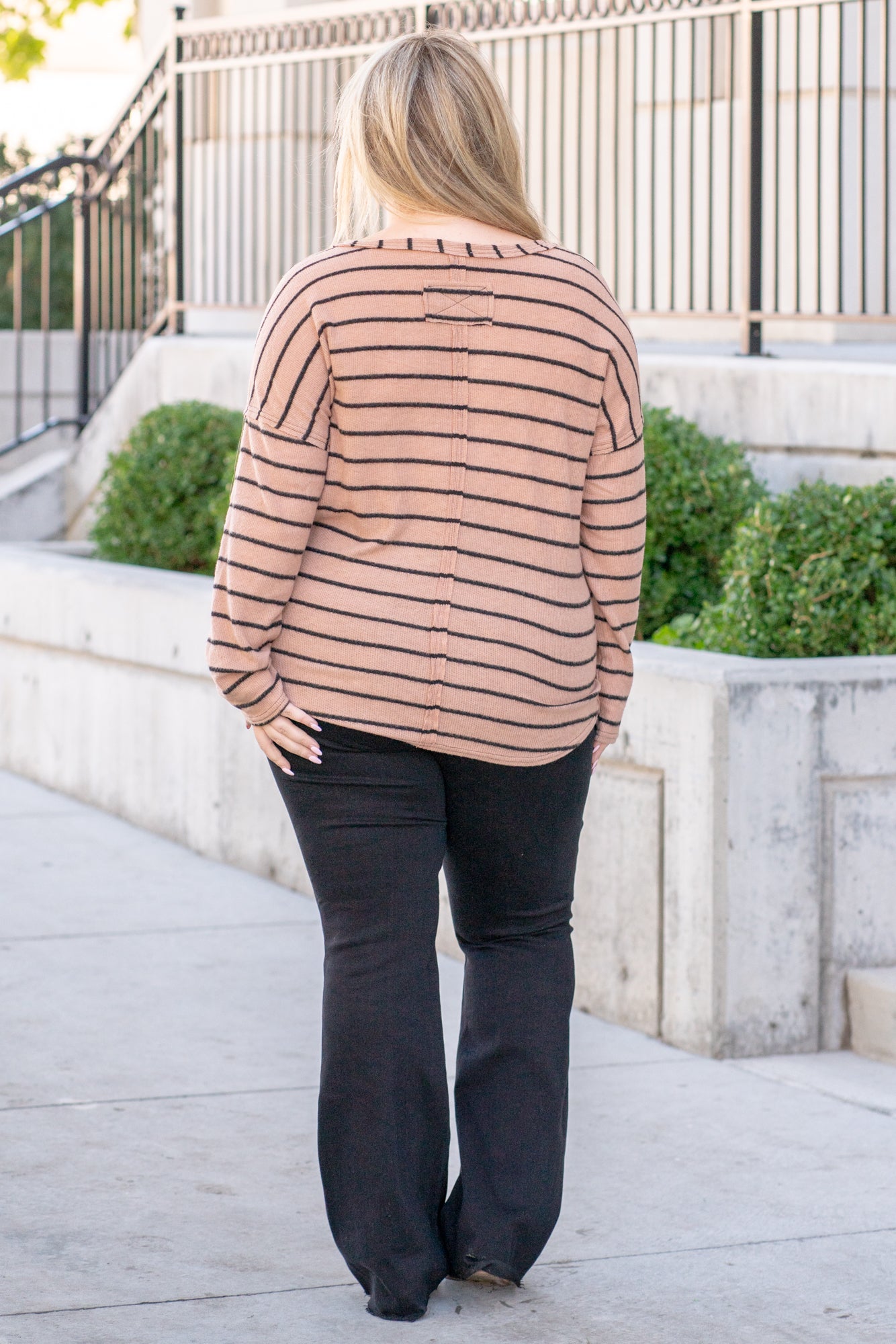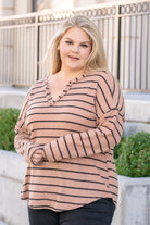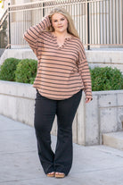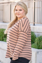 Striped Raw Edge Sweater - Mocha