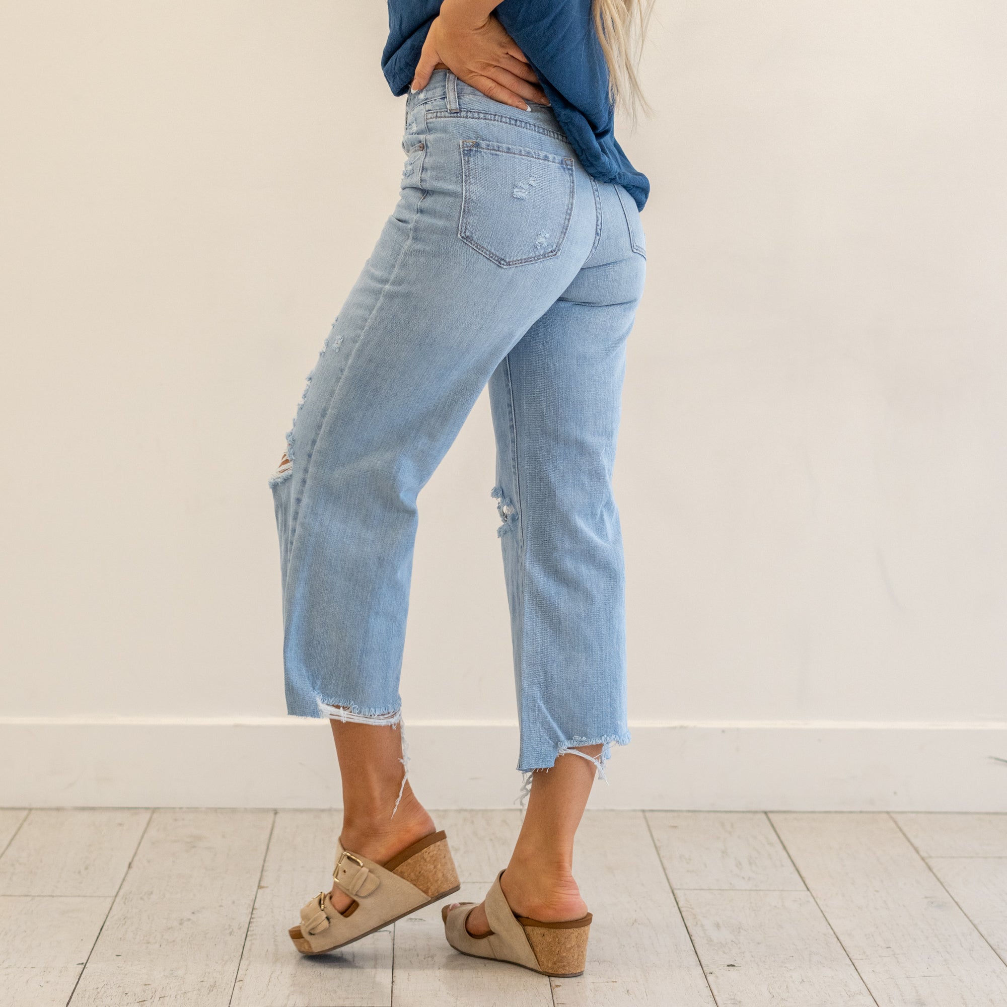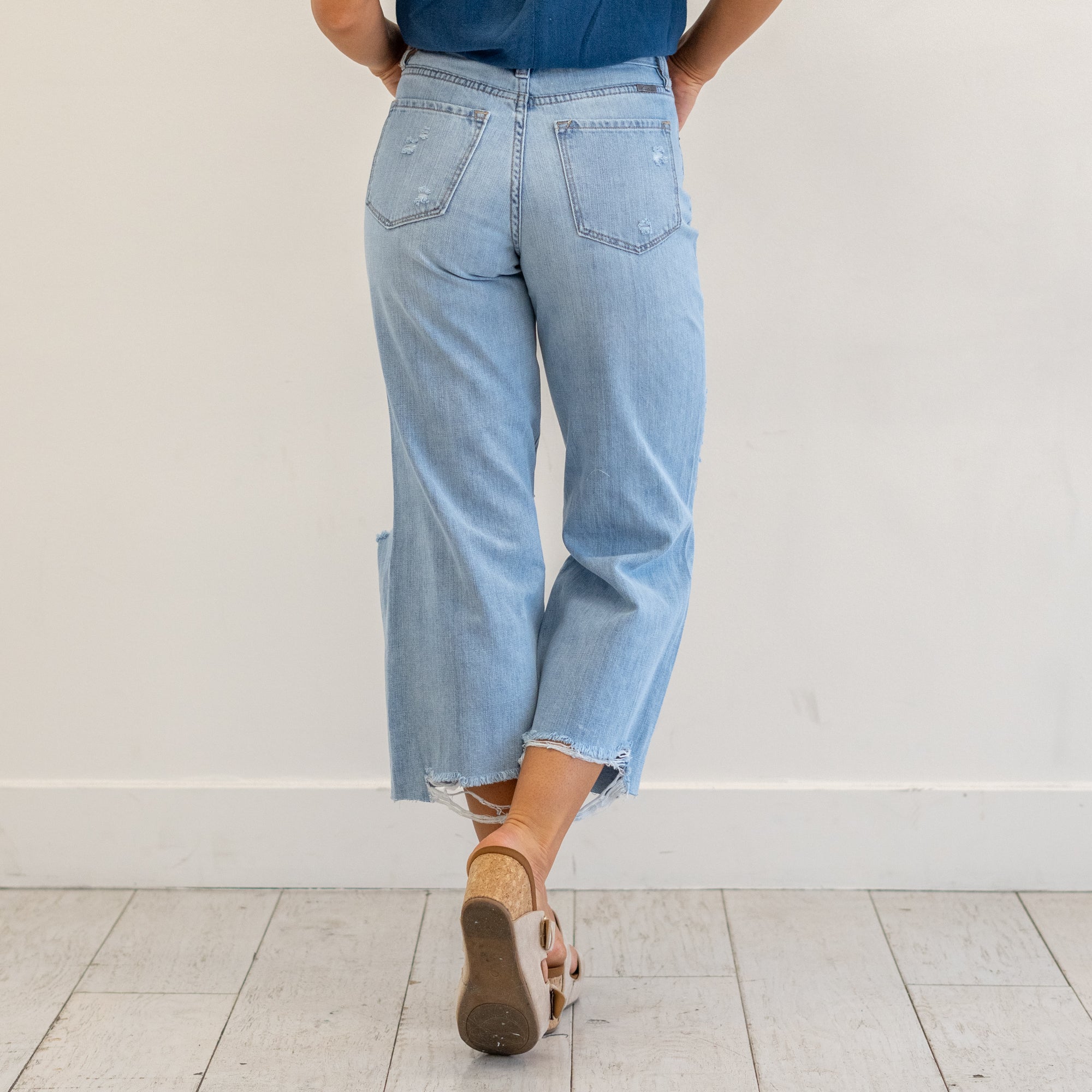 KanCan Rea Ultra High Rise Wide Tapered Fit Jeans Light Blue Wash