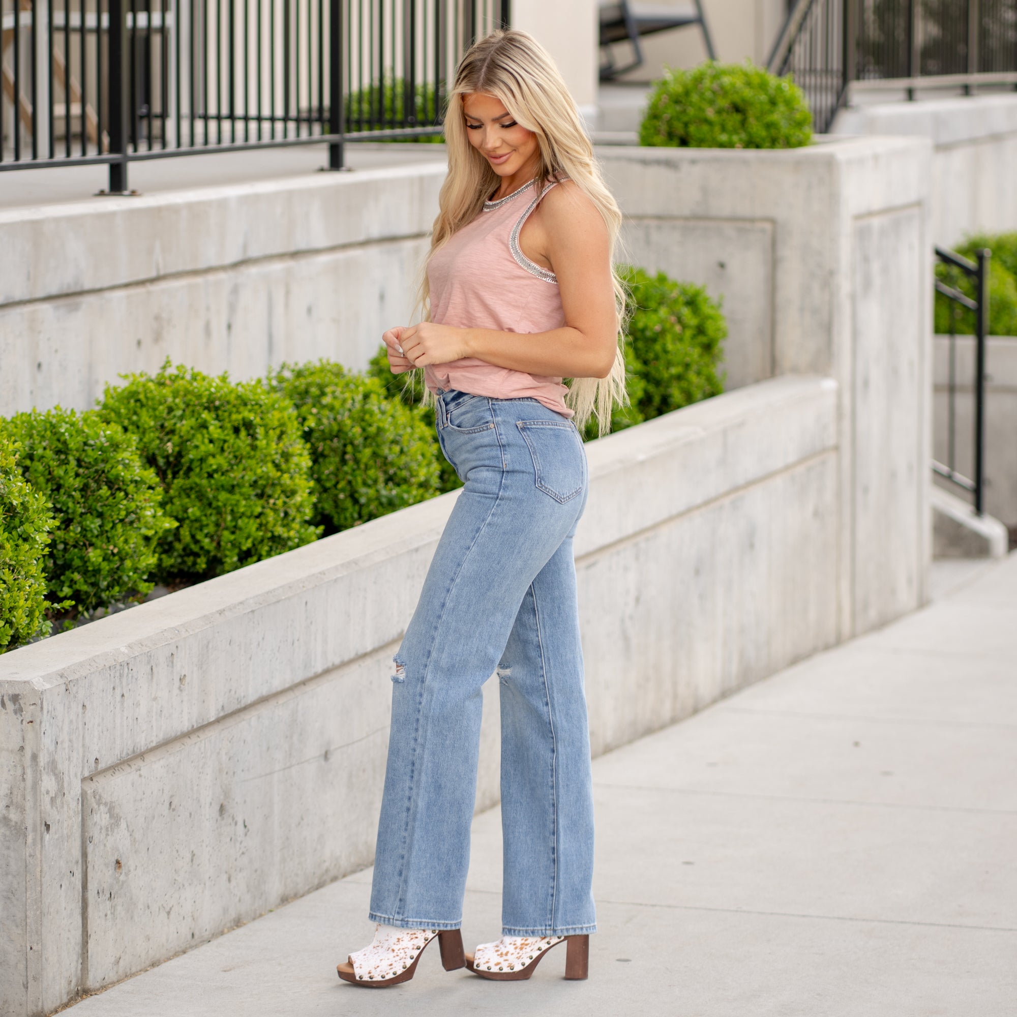 KanCan Abigail High Rise Flare Jeans Light Blue Wash