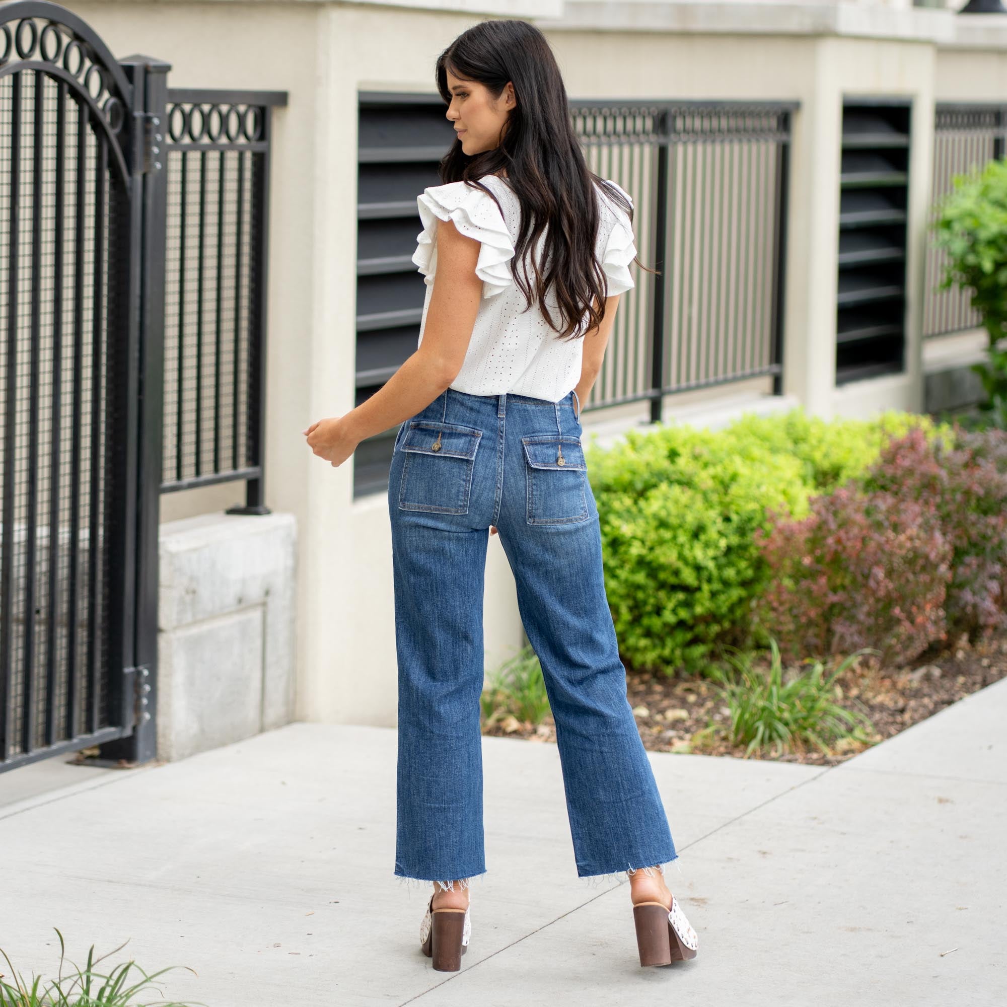VERVET Sharpest High Rise Raw Hem Ankle Slim Wide Leg Medium Blue