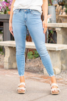 Watkins Mid Rise Fray Hem Ankle Skinny
