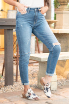 These comfortable boyfriends have a cuffed hem and ripped legs. Pair with a white tee and sandals this season for a casual look.