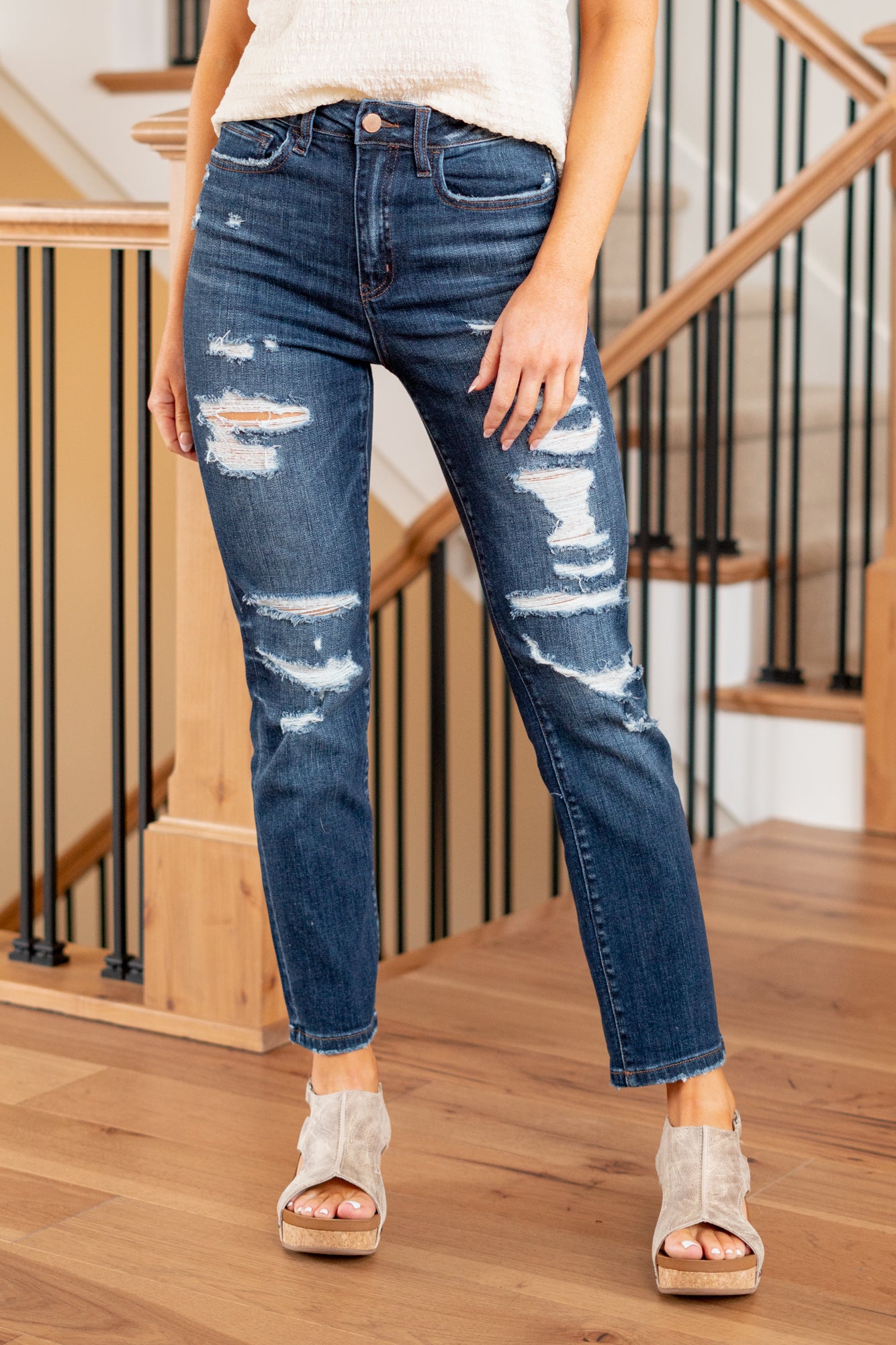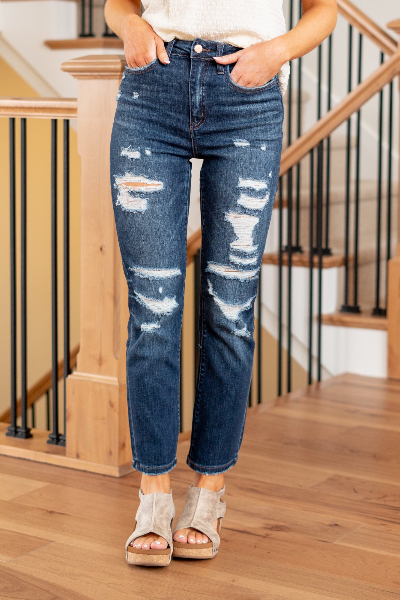 Yoko High Rise Distressed Straight Jeans