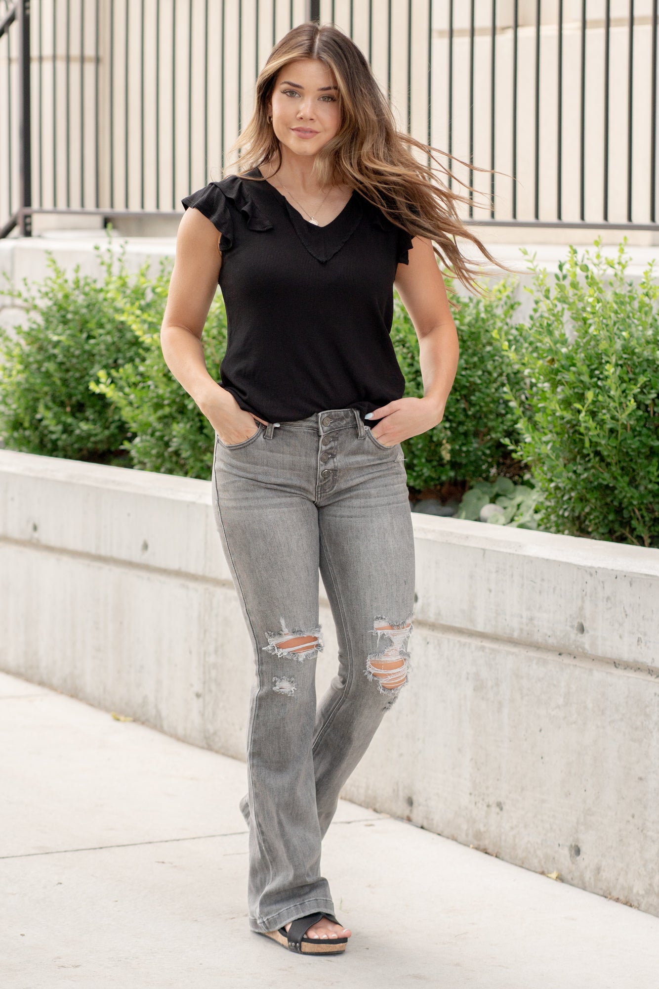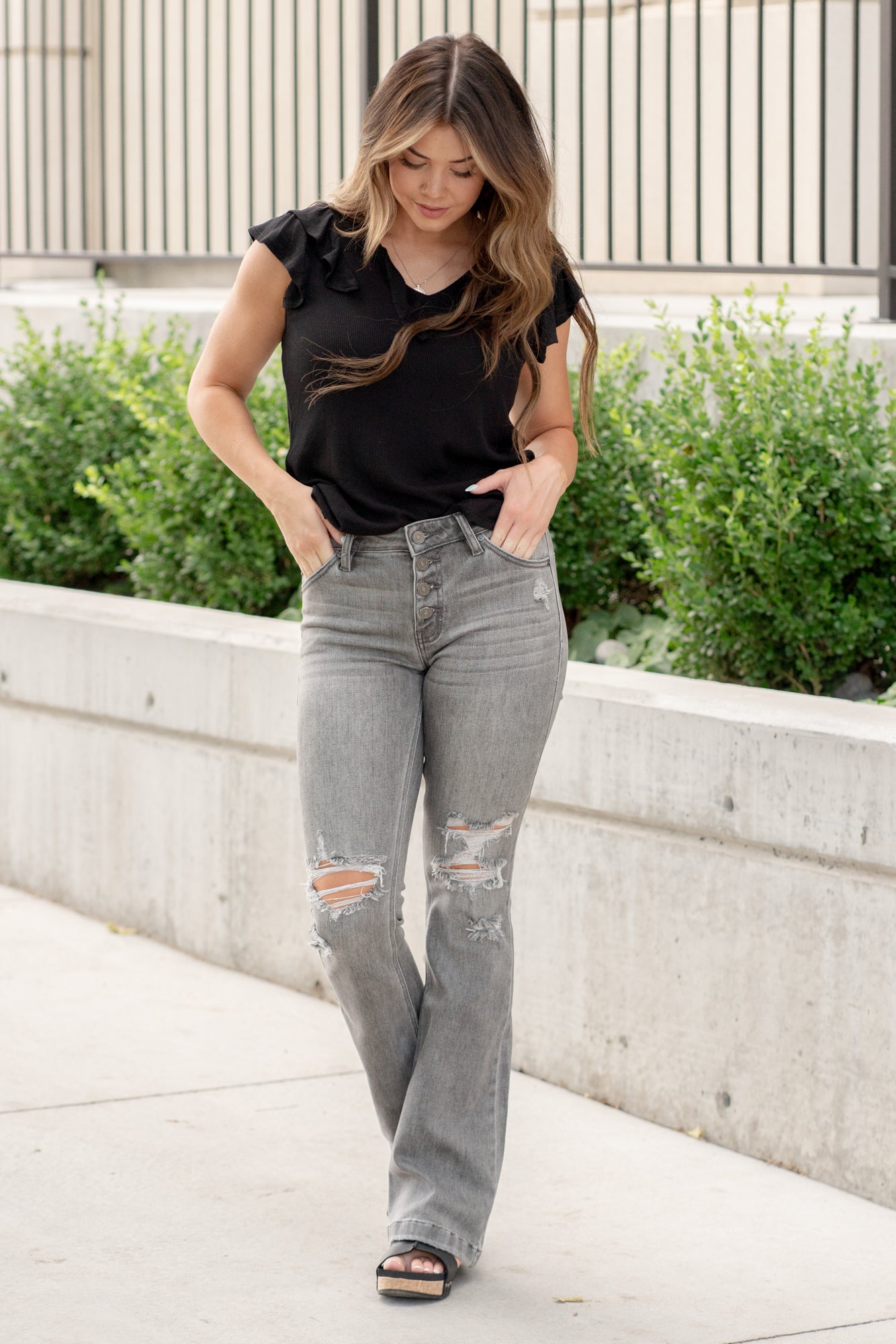 Judy Blue Jasper Mid Rise Distressed Button Fly Flare Regular & Plus Sizes