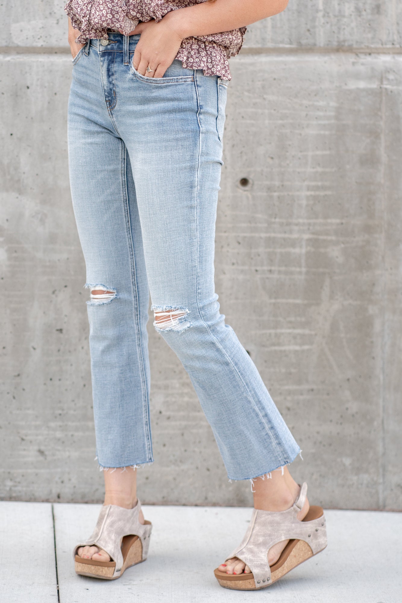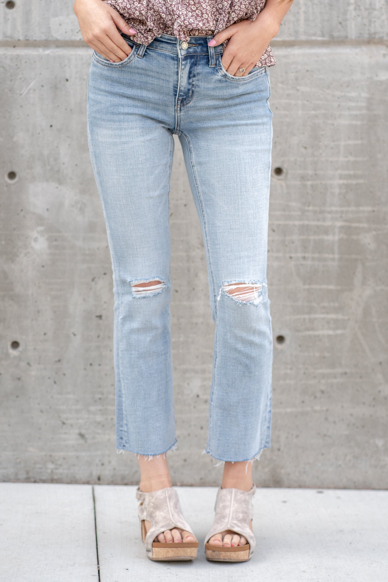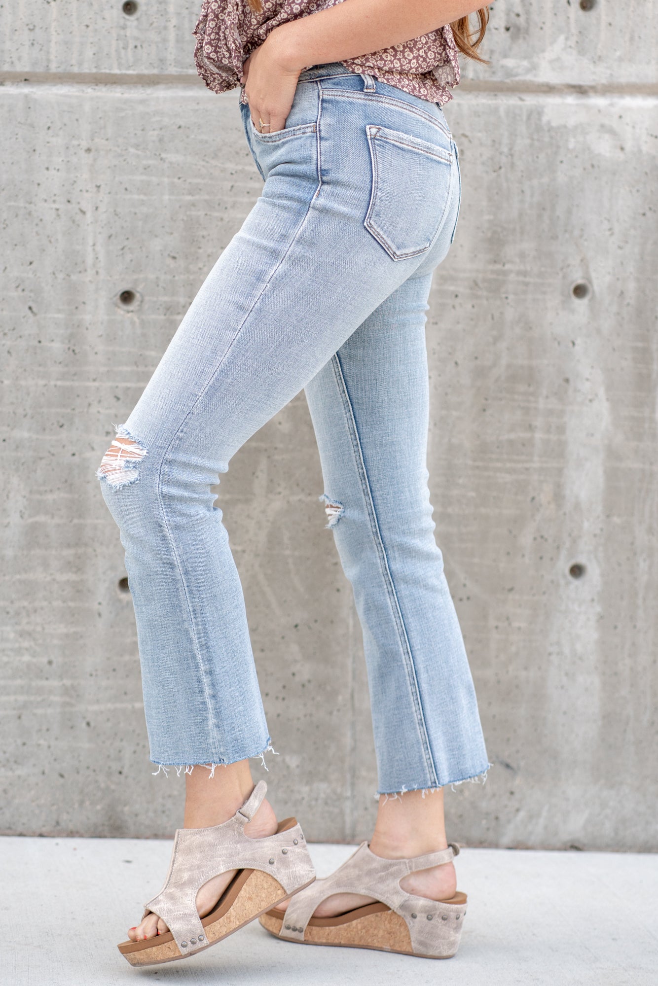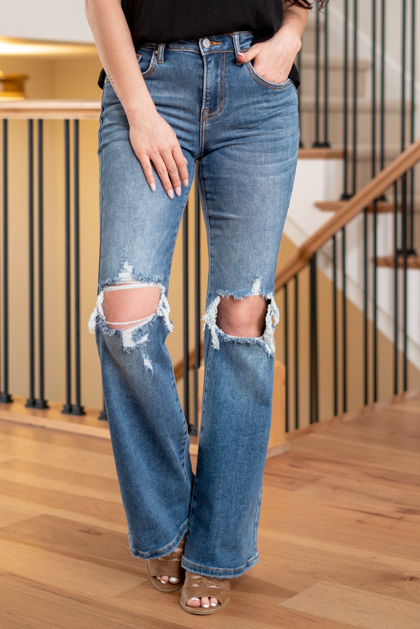 Maeve Mid Rise Distressed Flare Regular & Plus Sizes