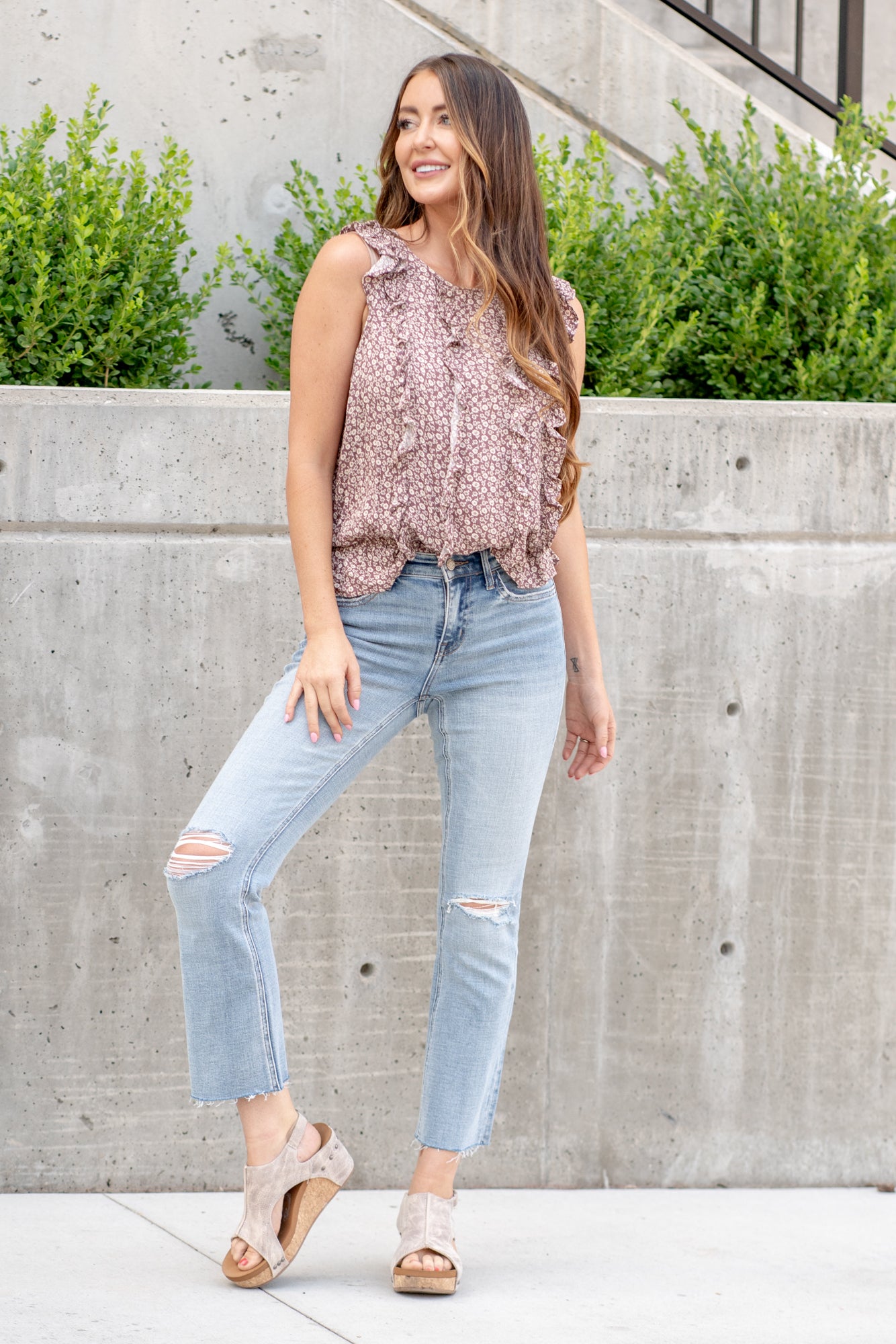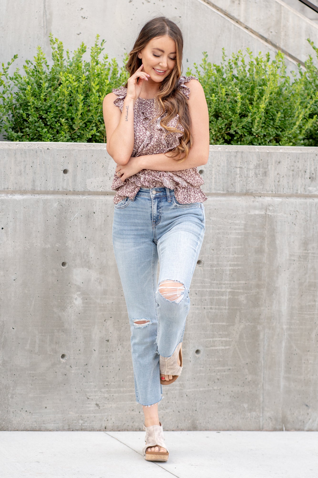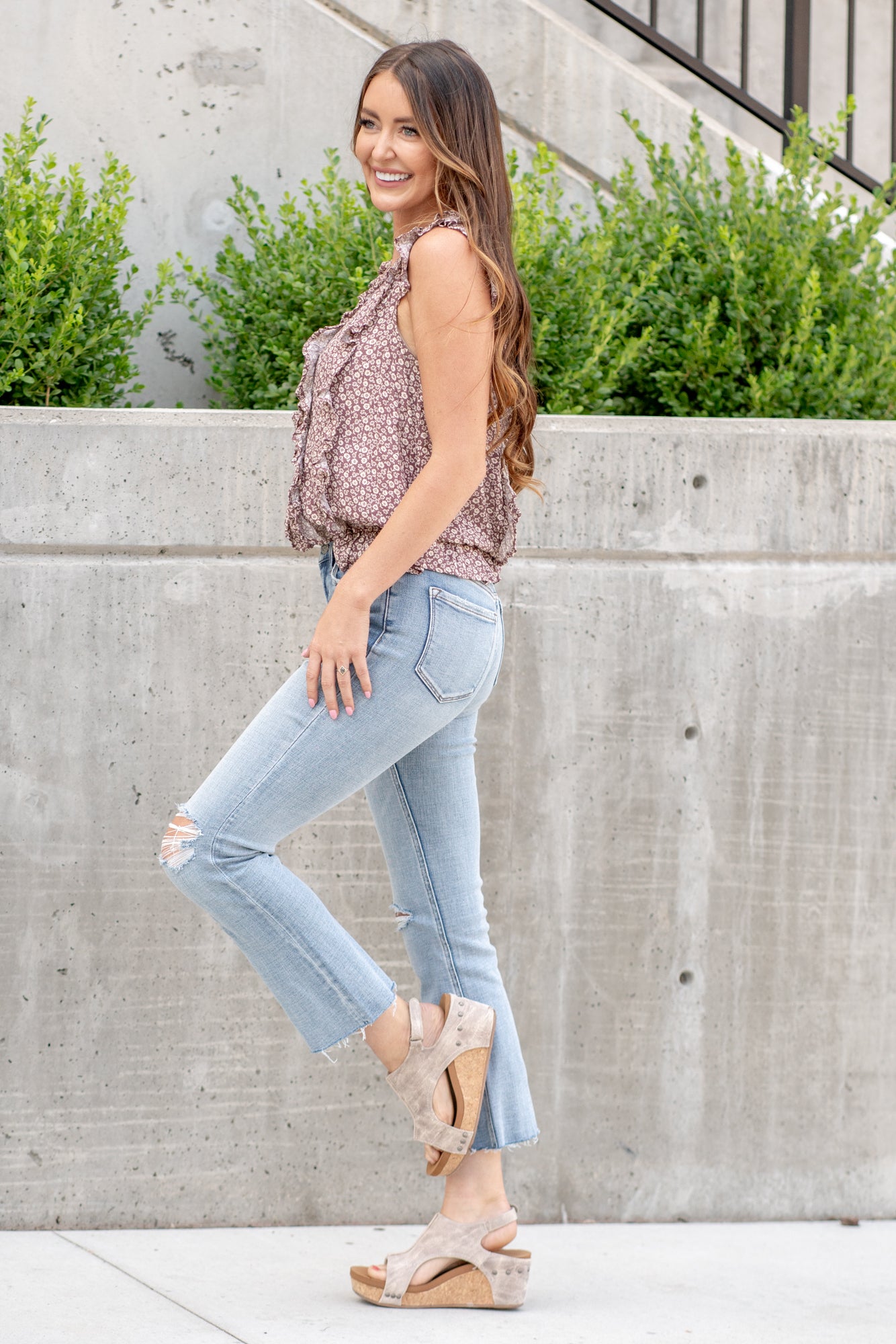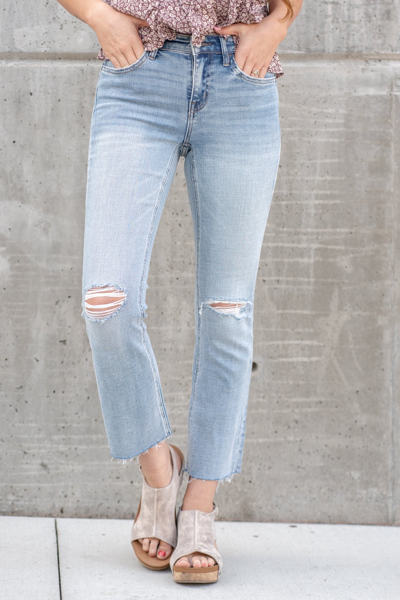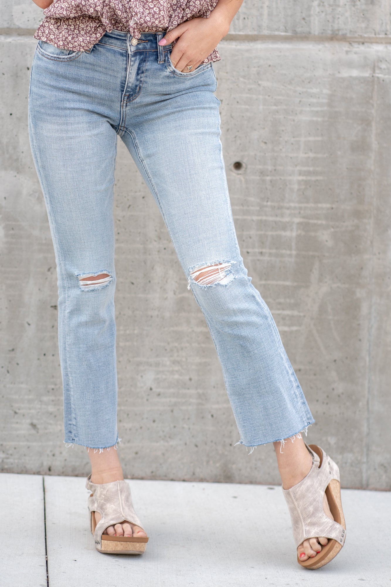 Maeve Mid Rise Distressed Flare Regular & Plus Sizes