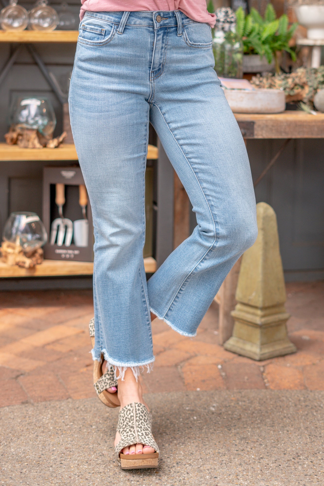 Judy Blue Jasper Mid Rise Distressed Button Fly Flare Regular & Plus Sizes