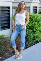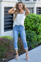 Zenana Coastal Cuffed Cropped Skinny Capri Jeans Medium Blue