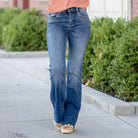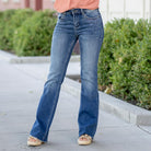 Shimmer Mid Rise Flare Jeans
