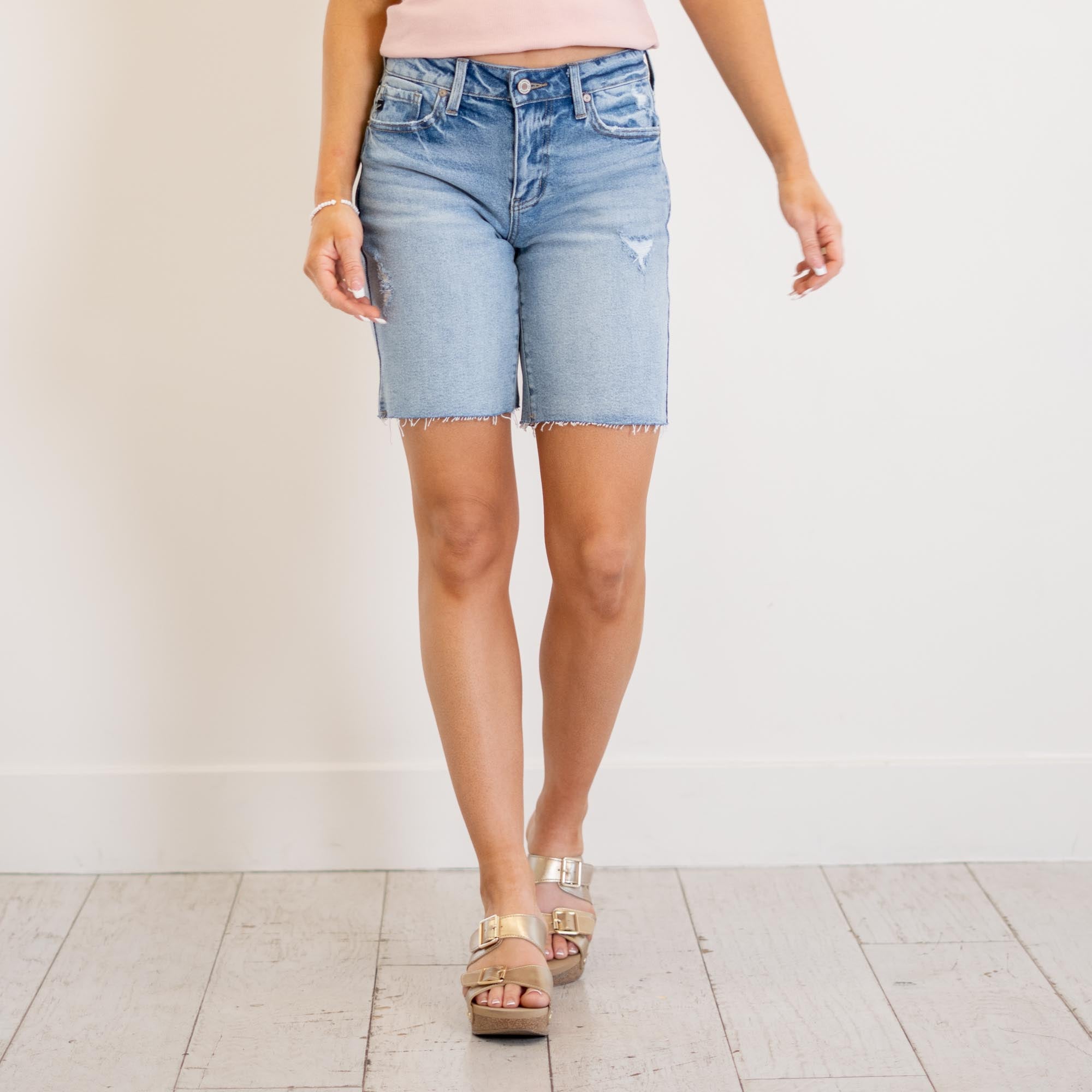 KanCan Talia Mid Rise Bermuda Shorts Medium Blue