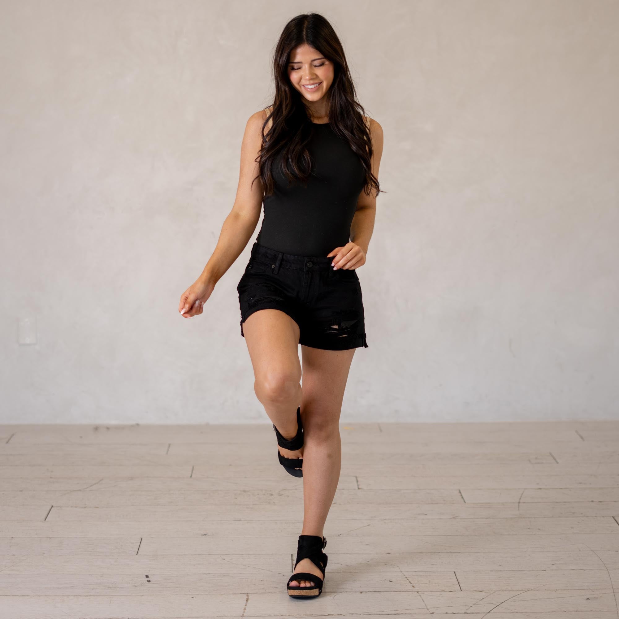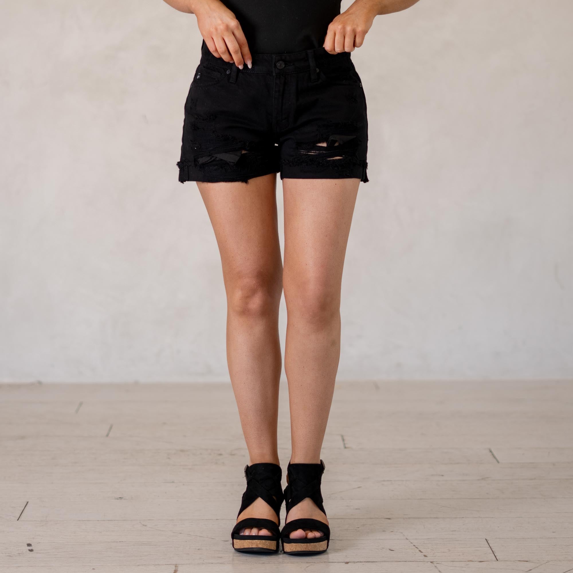 KanCan Tanner Mid Rise Shorts Black