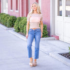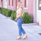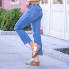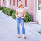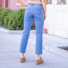 Catch The Light Mid Rise Medium Dark Wash Ankle Straight Jeans