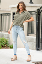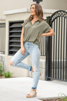 Alyssa wears a size 25 in jeans, a small in tops, and 8 in shoes. She is wearing size 25 in these jeans.