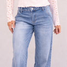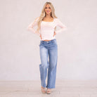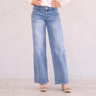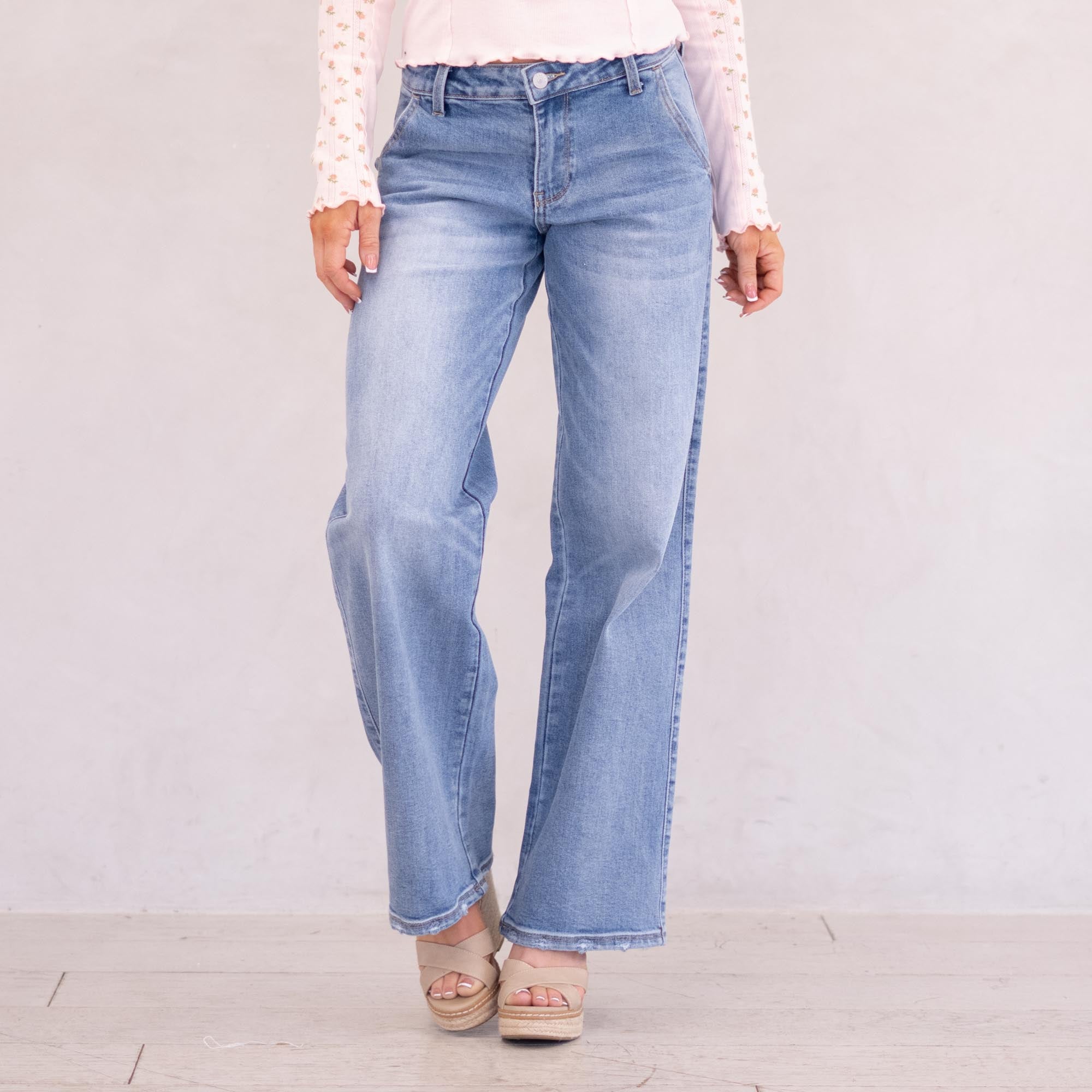 KanCan Alma Essentials Mid Rise Wide Leg Trouser Leg Medium Blue
