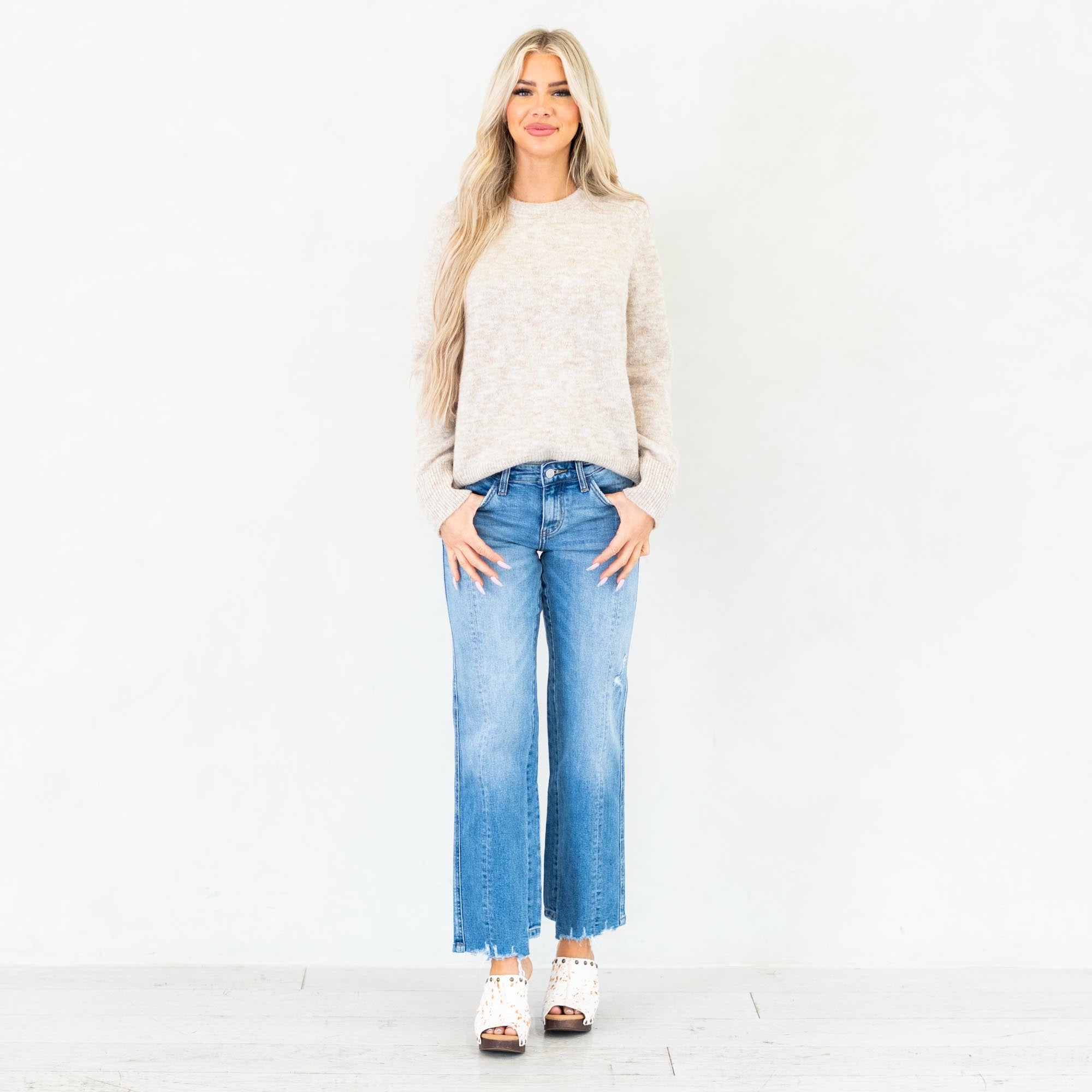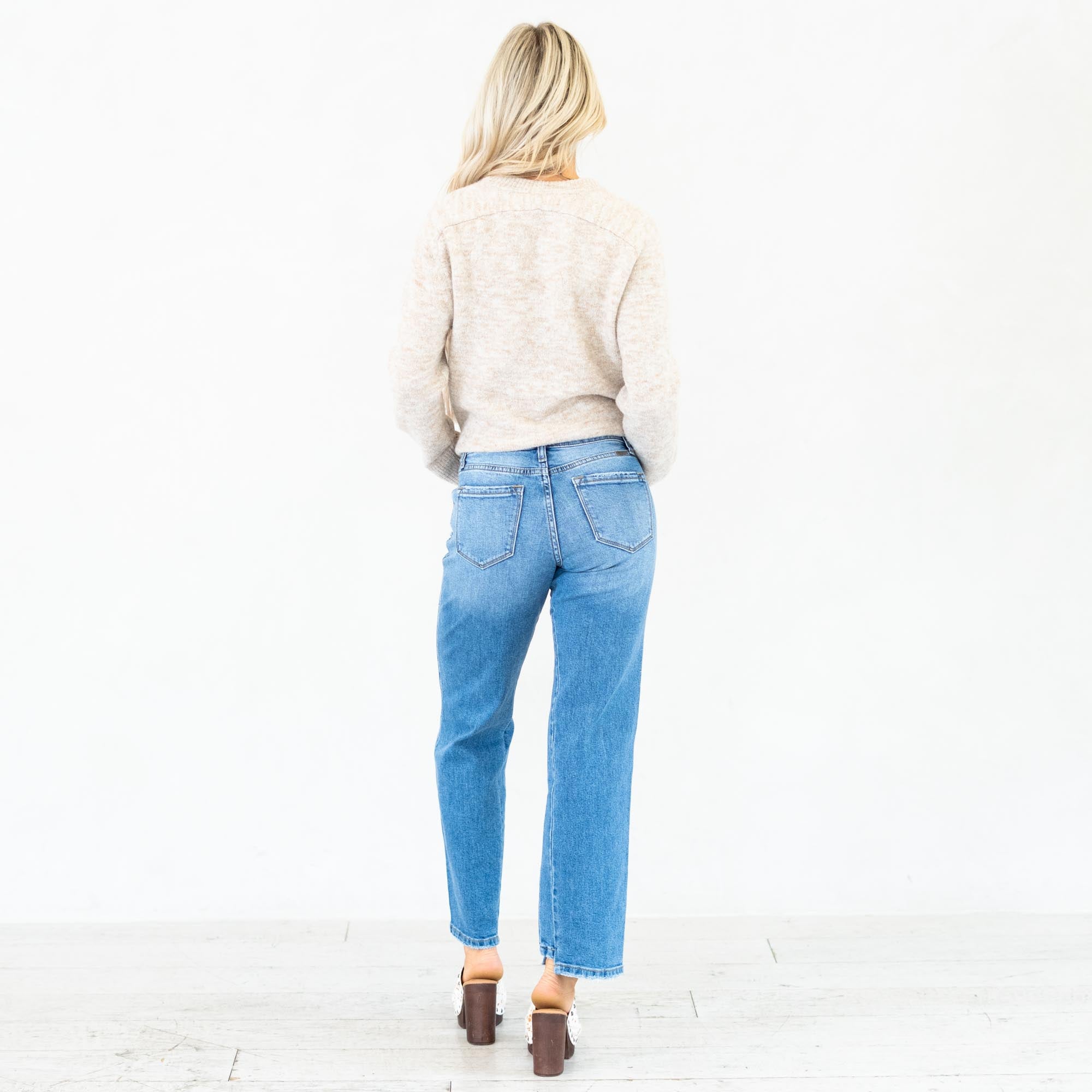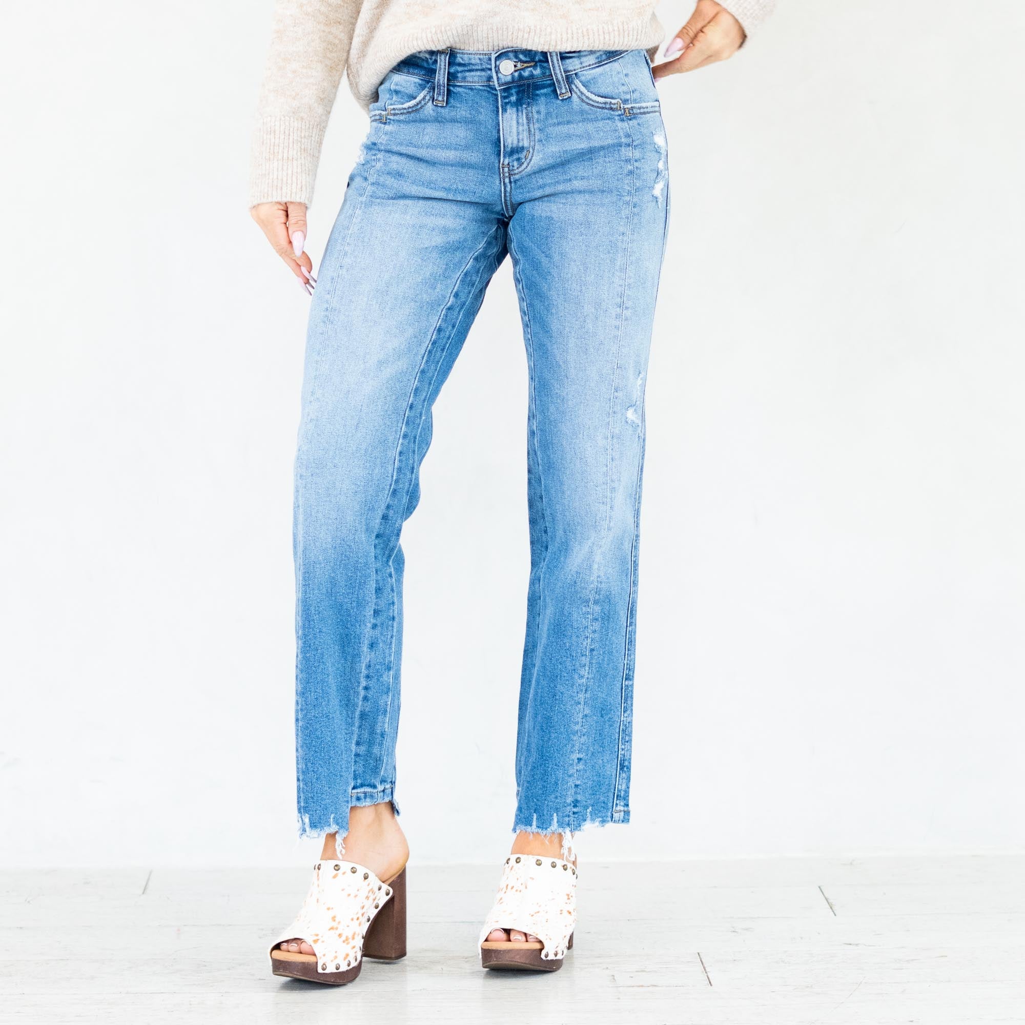Meet the Kells Mid Rise Straight Jeans, your new everyday essential for that effortlessly put-together look. Designed to sit just below the natural waist, these jeans feature a true straight-leg cut that delivers a timeless silhouette with just the right touch of modern flair.