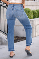 KanCan Megan Mid Rise Crop Straight Jeans Medium Blue Wash