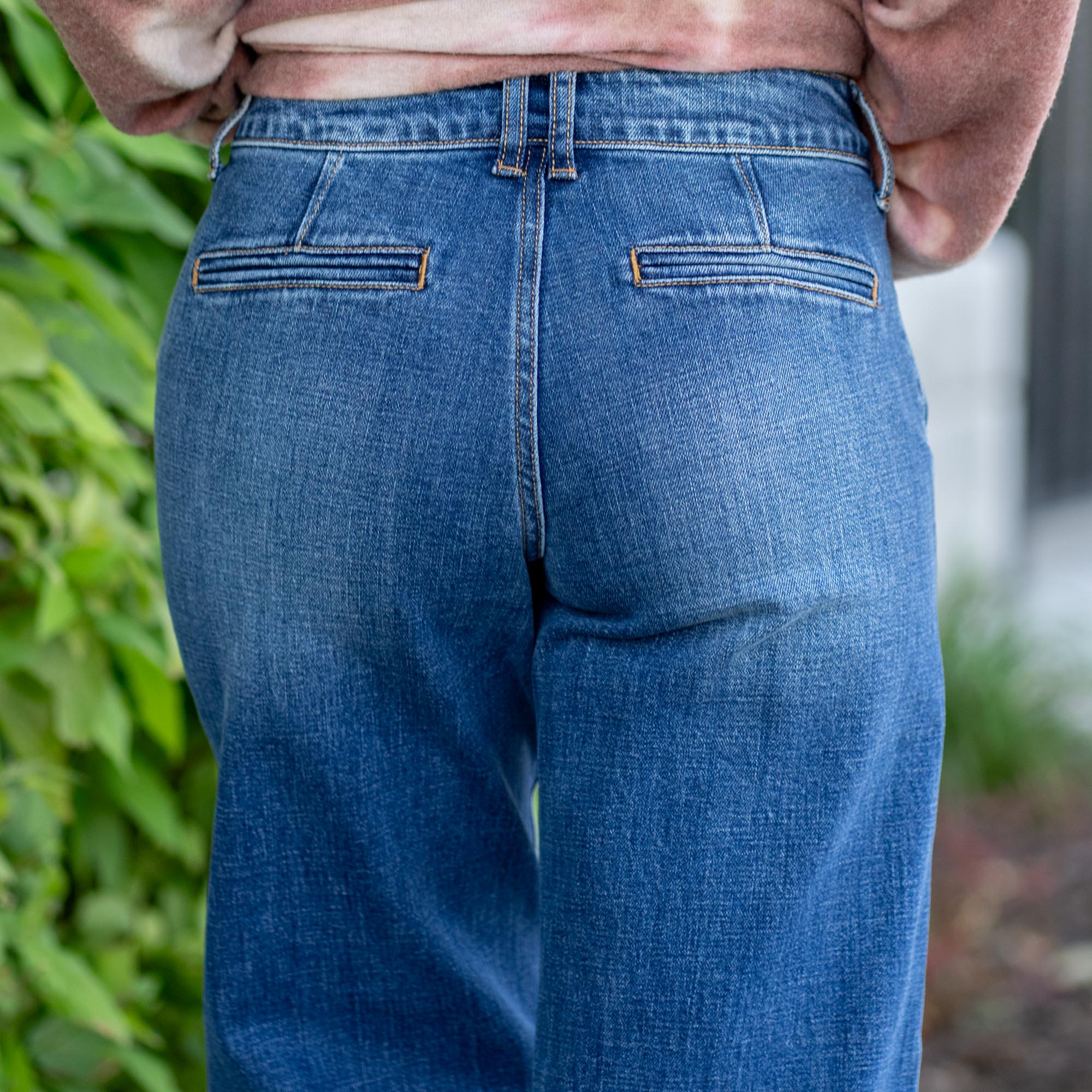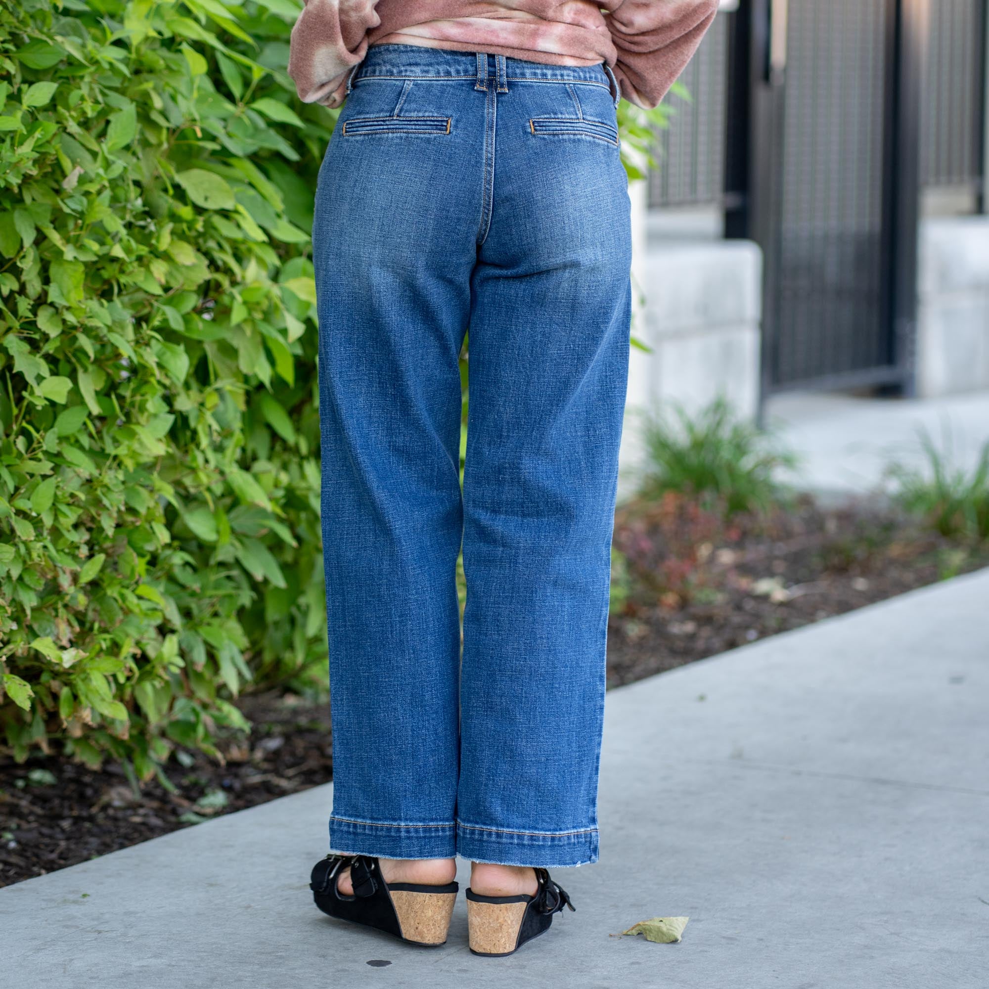 Featuring slant front pockets, faux welt details, and darting at the back for a flattering fit, these jeans strike the perfect balance of polish and comfort. A wide 1.5" hem completes the trouser-inspired finish, making them versatile enough to dress up for the office or style casually for the weekend.
