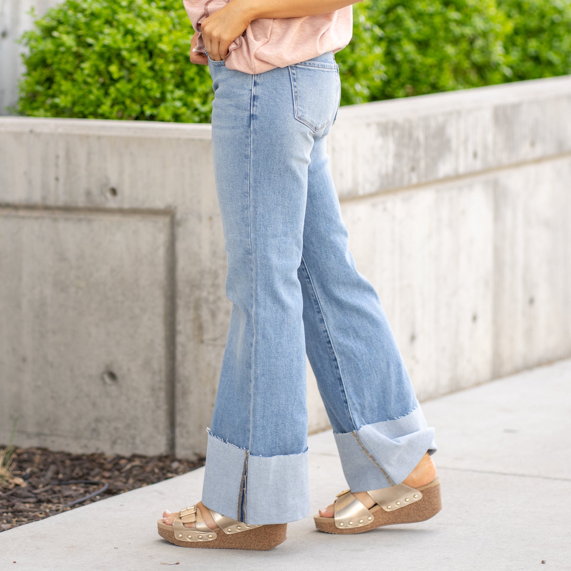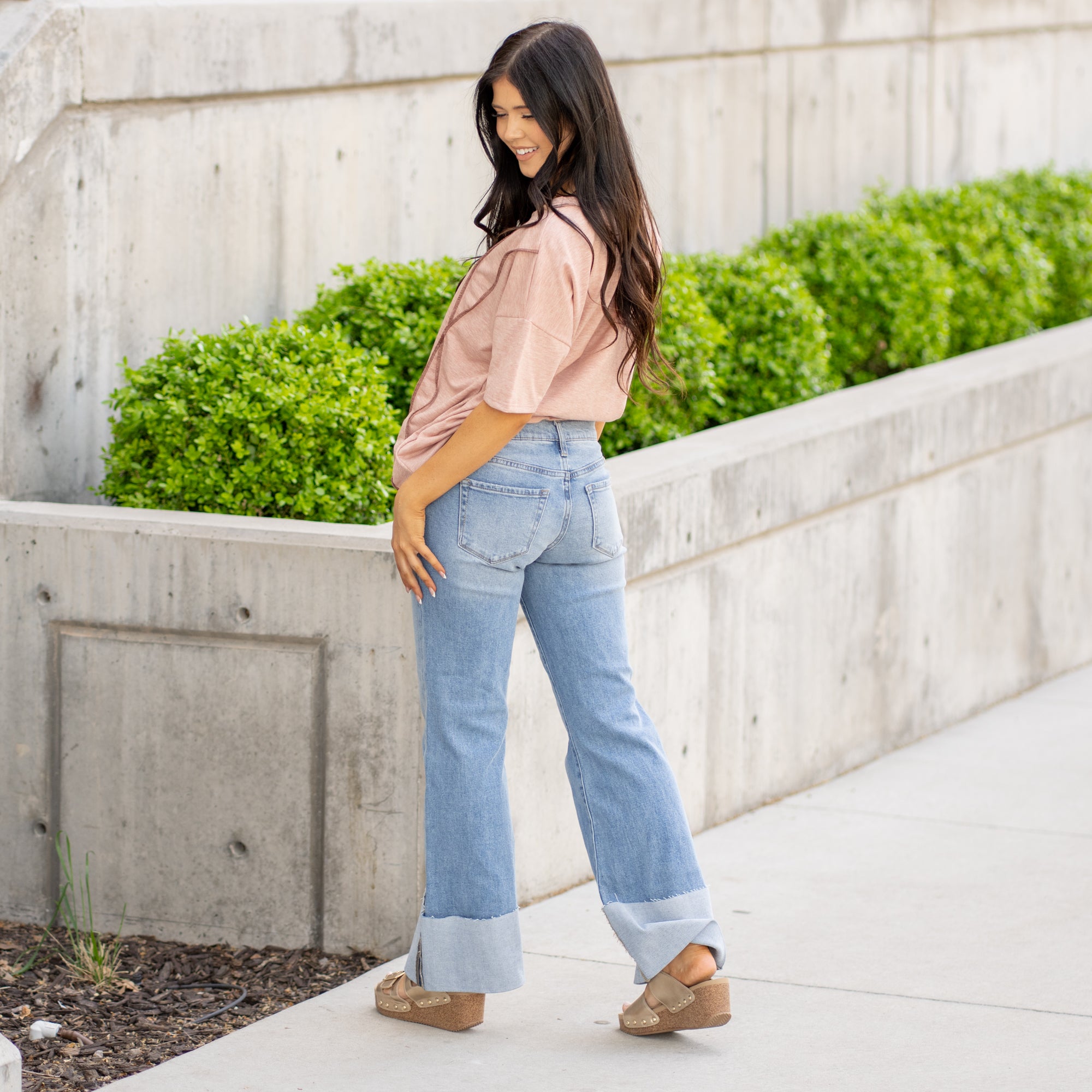 The Emma Cuffed Flare is your go-to for bold, standout denim. Designed in a flattering mid rise and crafted from comfort stretch denim, this pair hugs just right while giving you room to move. A wide flared leg with a cuffed hem and light whiskering adds effortless drama, all in a gorgeous medium wash. Whether you’re pairing with heels or sneakers, this style is made to turn heads. Finished with a zip fly and classic five-pocket design.