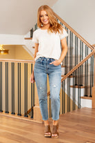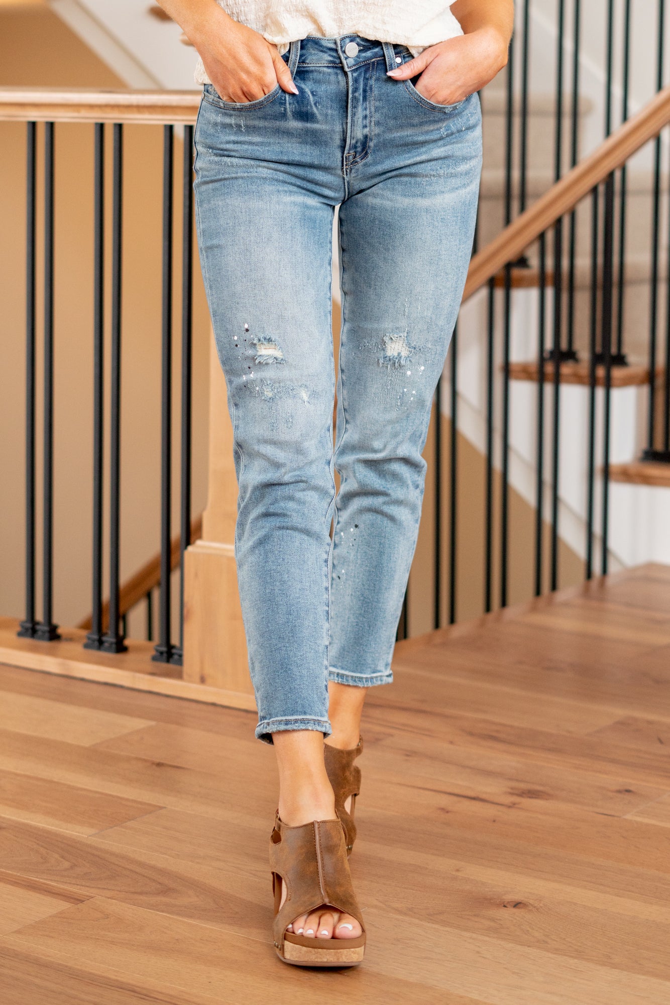 With a mid-rise, these jeans hit exactly the right spot on your waist, and spandex, these will stretch as you wear them. Pair with a graphic tee and tennies.