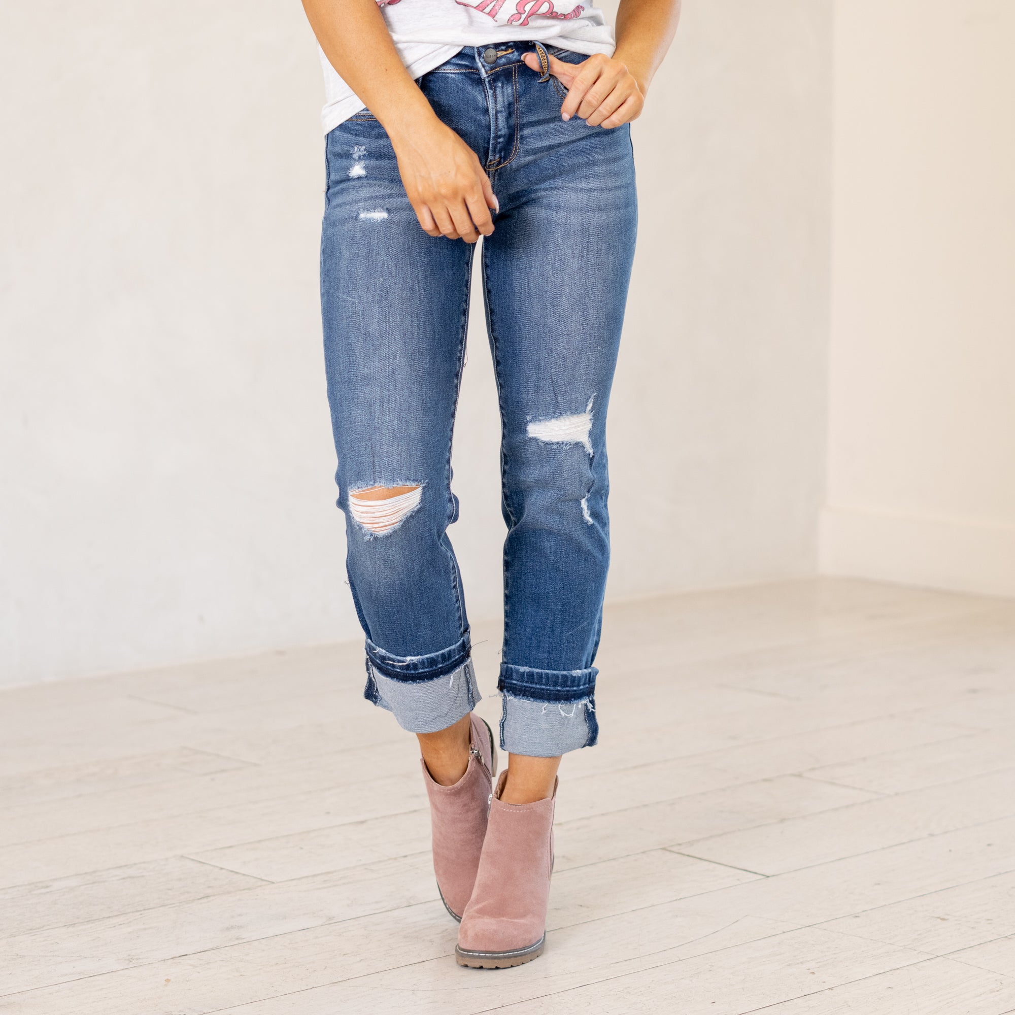 Maleya Mid Rise Cropped Straight Leg Regular & Plus Sizes