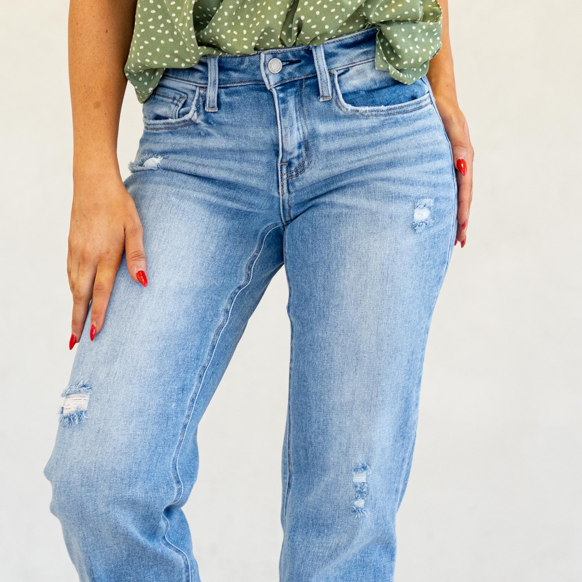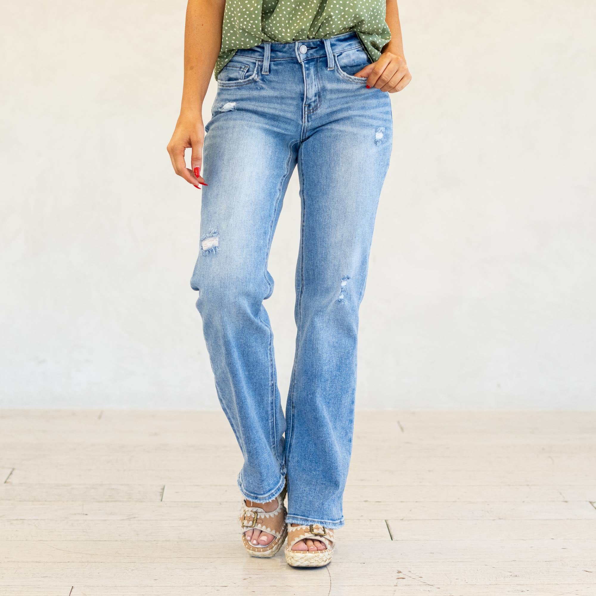 VERVET Light Stone Wash Mid Rise Slim Wide Leg Jeans