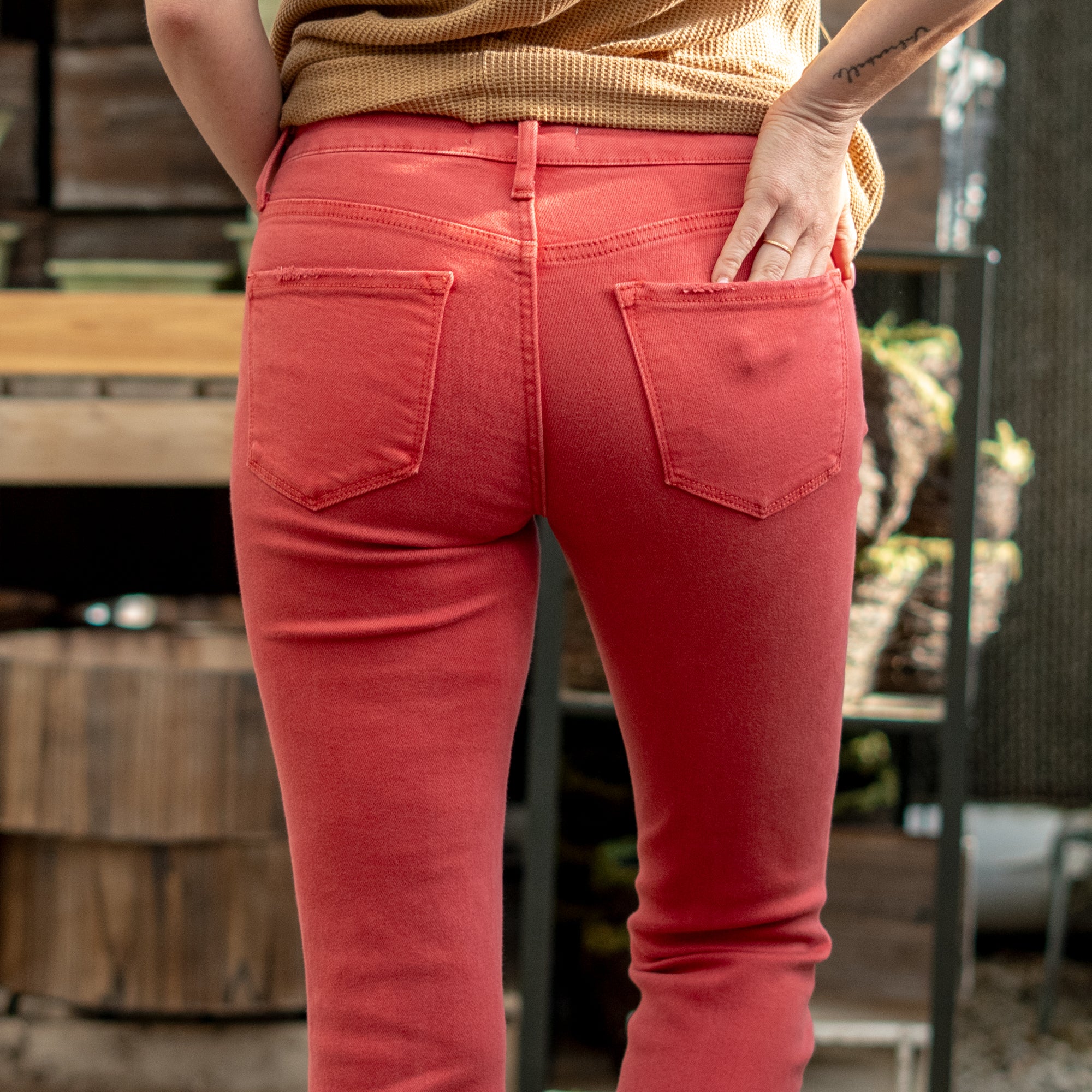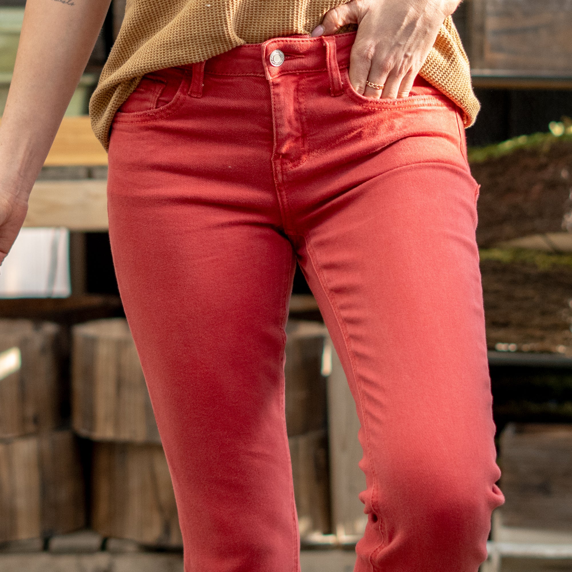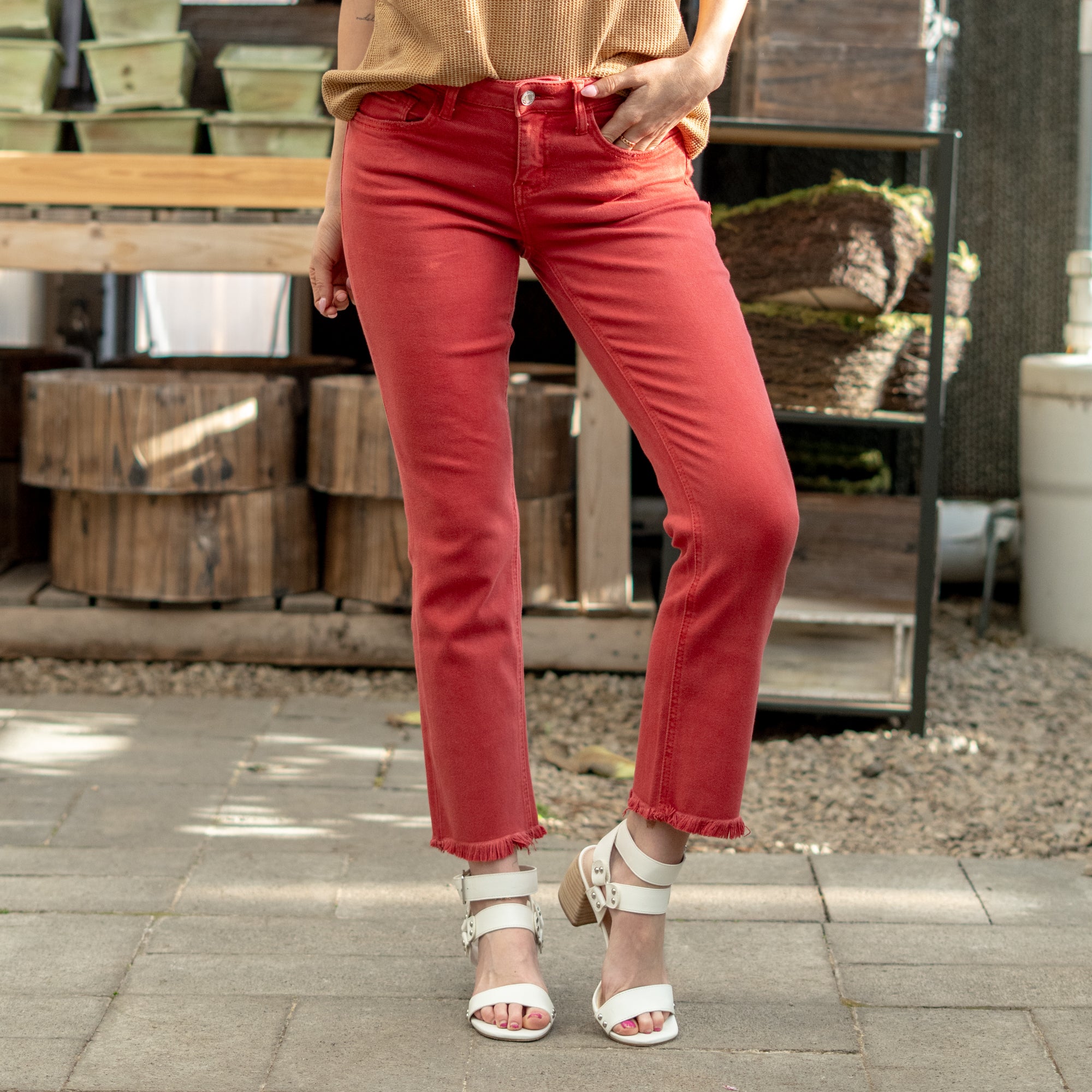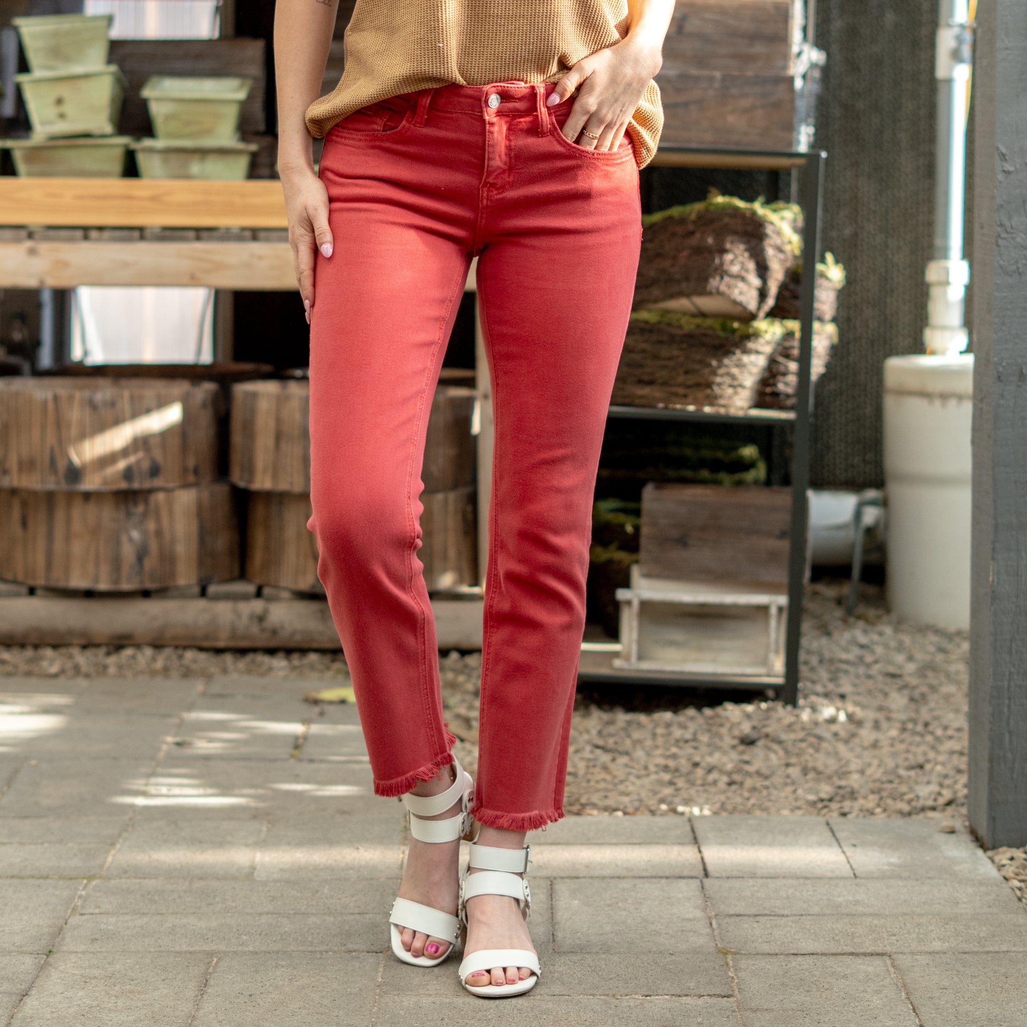 Pompeian Red Mid Rise Cropped Straight Leg