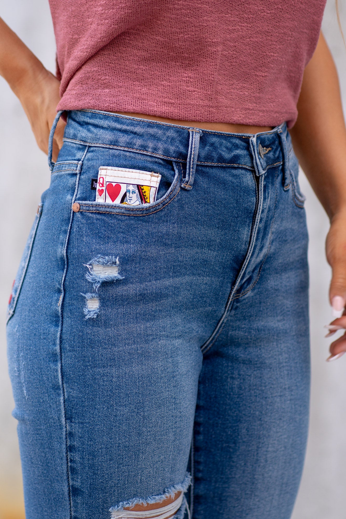 Introducing our HW Queen of Hearts Coin Pocket Boyfriend Jeans with 4-way stretch – your new denim obsession! These jeans are the perfect combination of style and comfort. With a high waist design and a unique coin pocket detail, they add a touch of flair to your everyday look. Crafted from premium denim with 4-way stretch, they provide ultimate flexibility and movement while maintaining their shape. Whether you're running errands or going out with friends, these jeans will keep you looking chic and feeling fabulous all day long