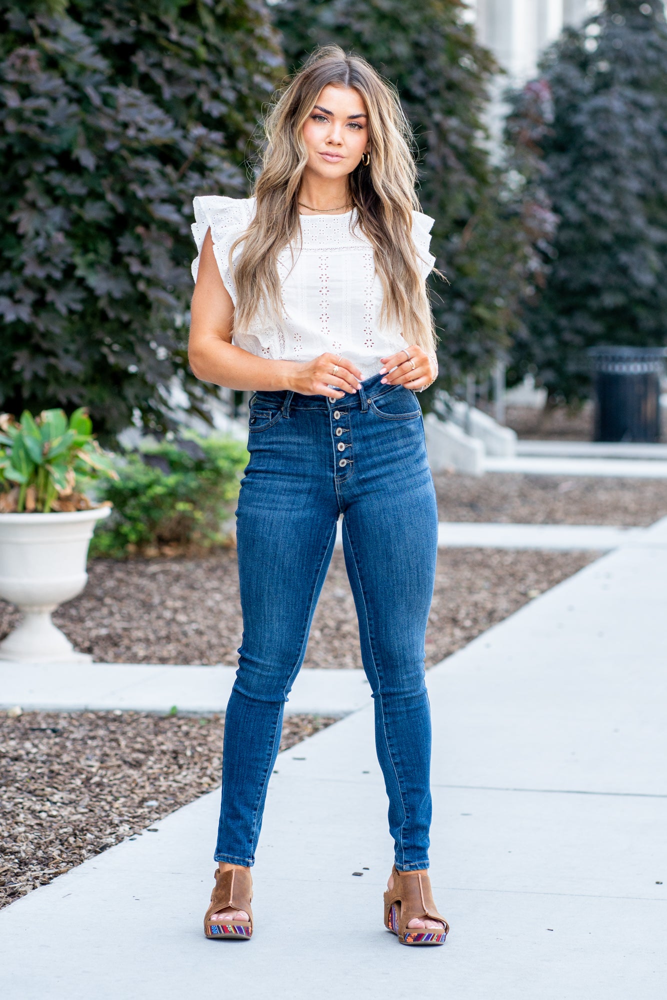 KanCan Morgan High Rise Button Fly Skinny Jeans Dark Blue