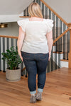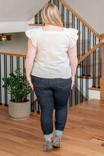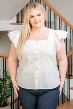 Upgrade your wardrobe with this chic button up top. With a flattering square neckline and flutter sleeves, this top offers both style and comfort. The button-up design adds a touch of sophistication, making it a versatile piece for various occasions.