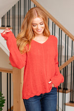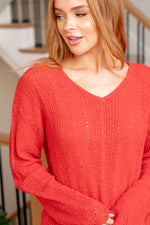 Celeste Eyelet V Neck Knitting Sweater - Red