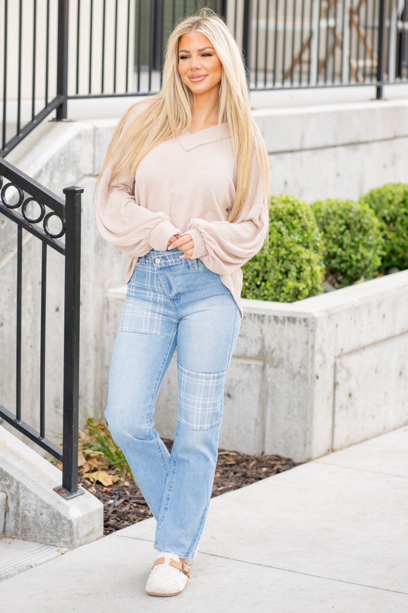 Aylin 90's Plaid Patch High Rise Boyfriend