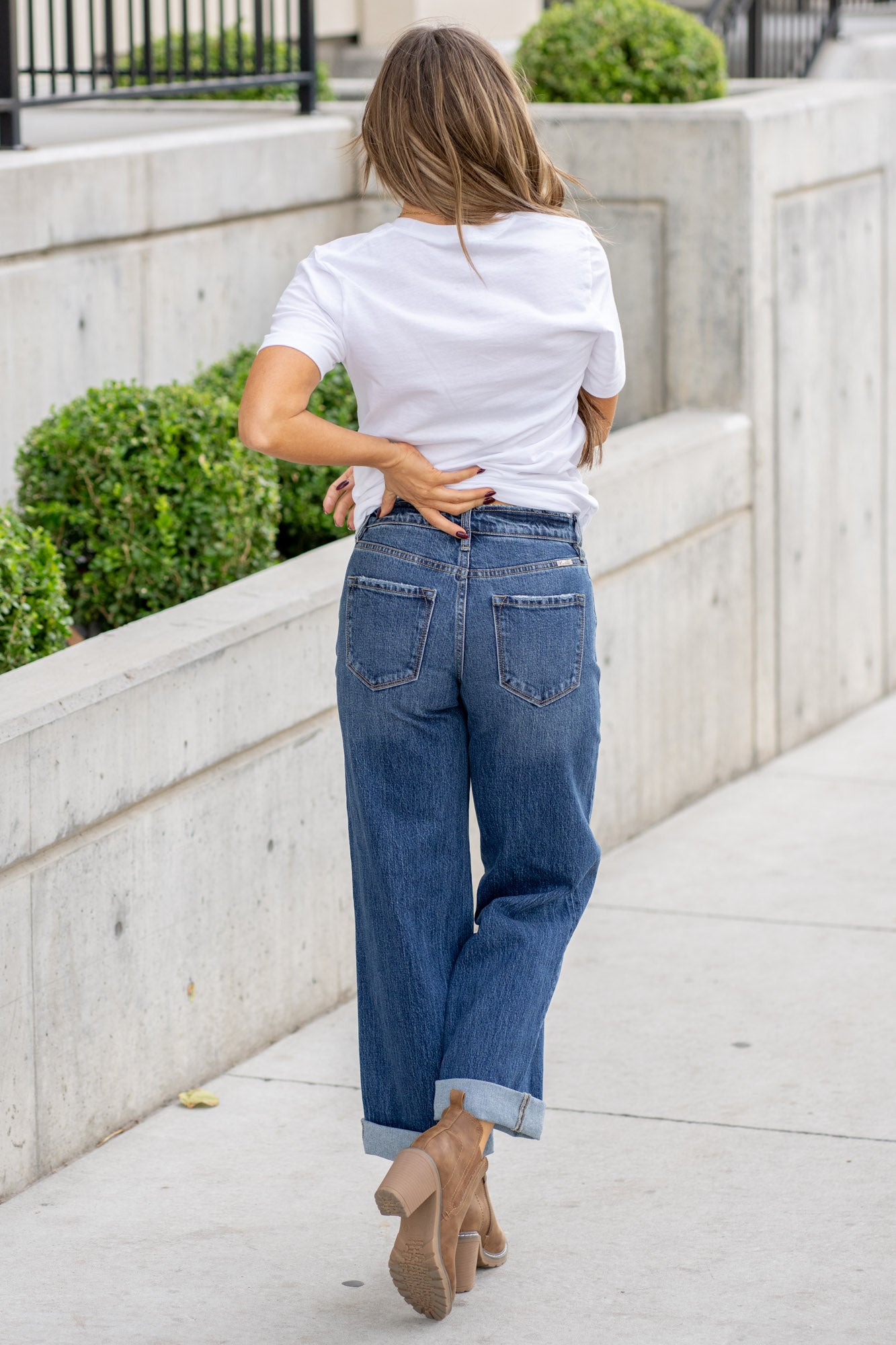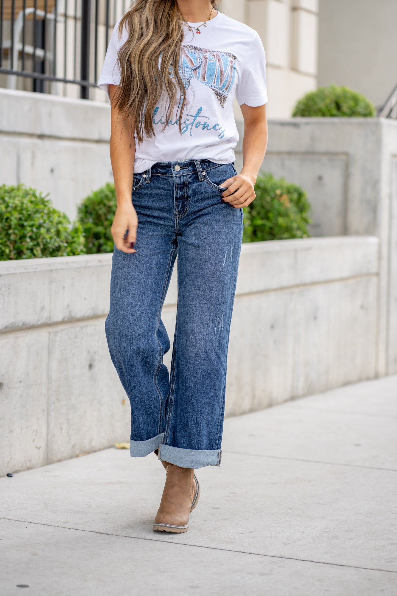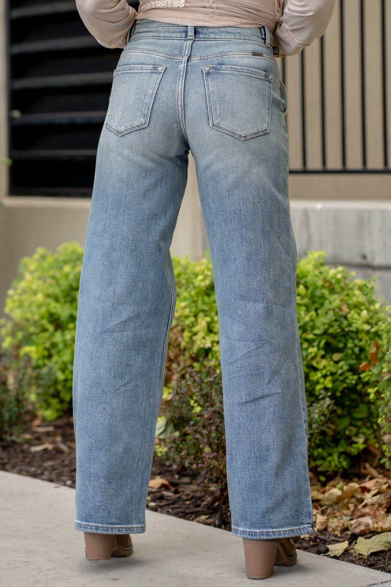 Amber Fields Mid Rise Raw Hem Straight Leg