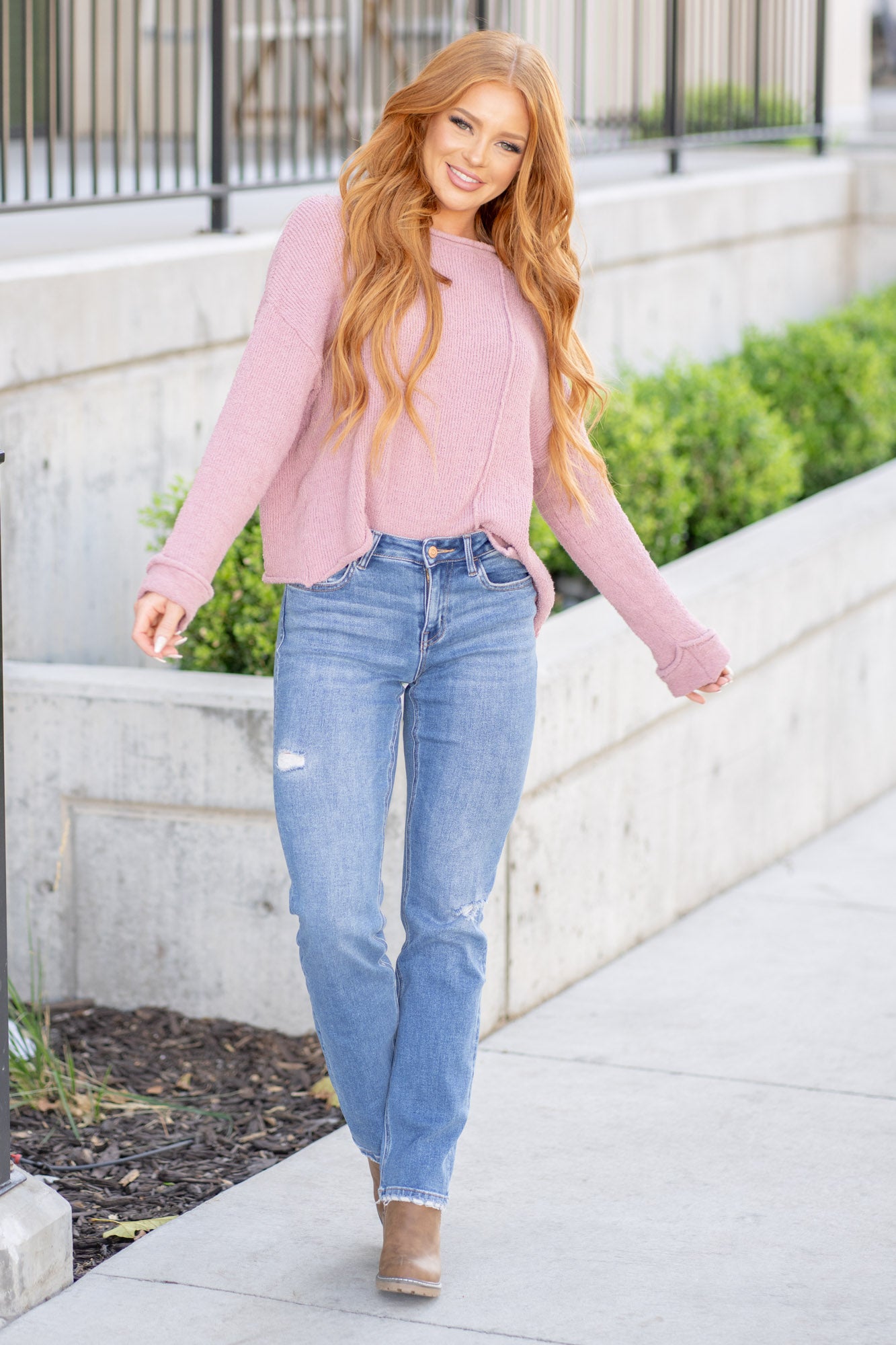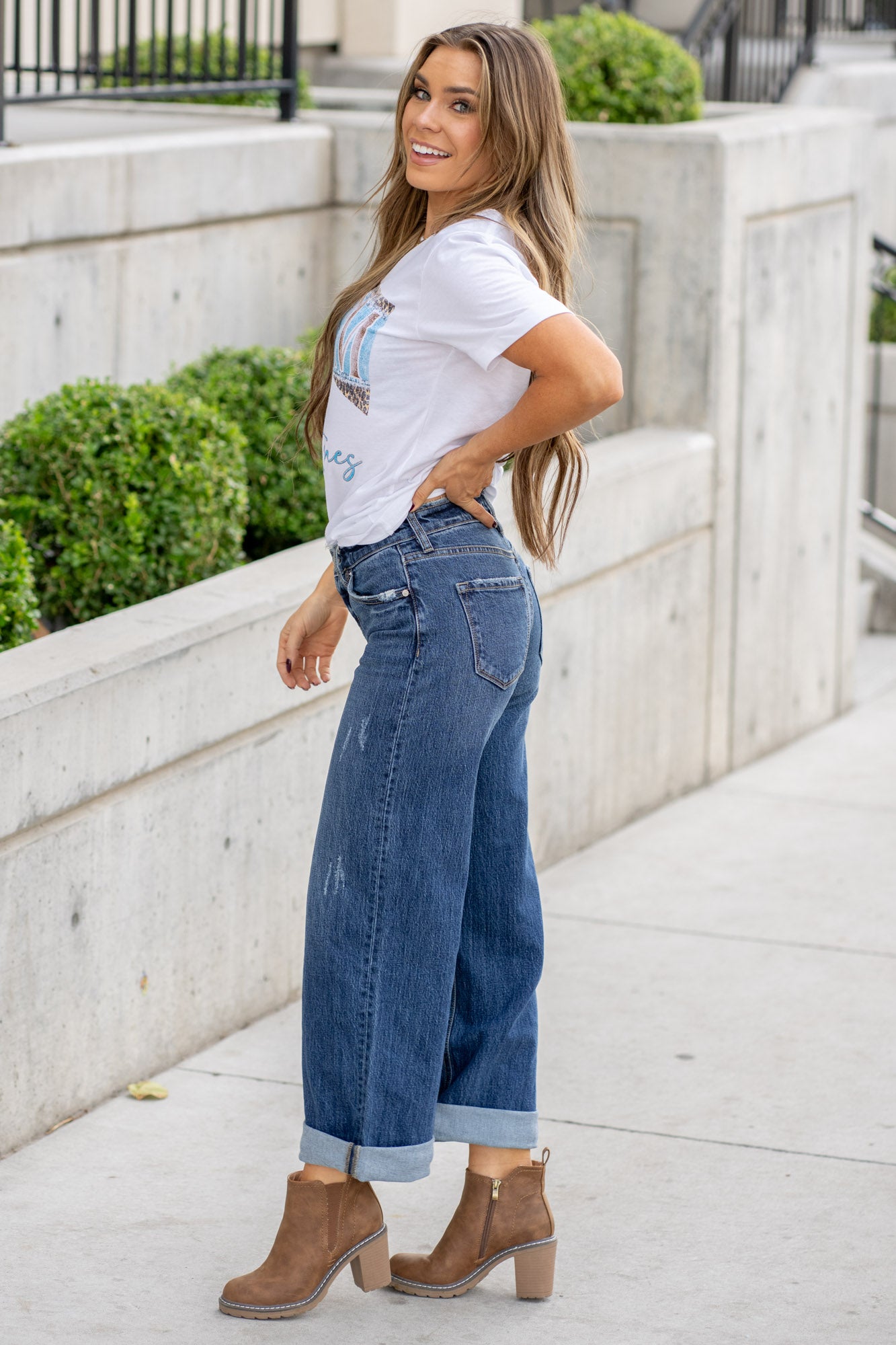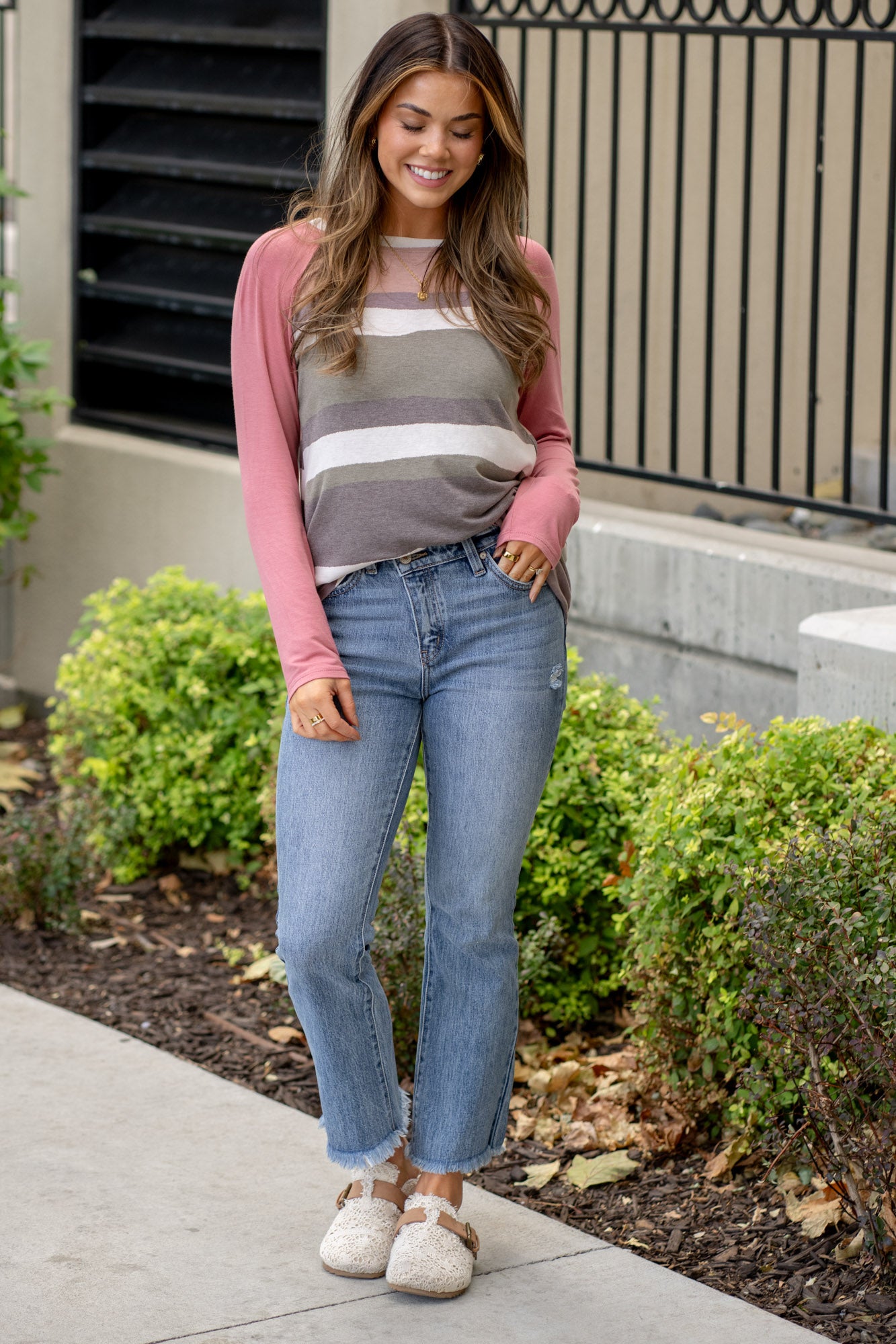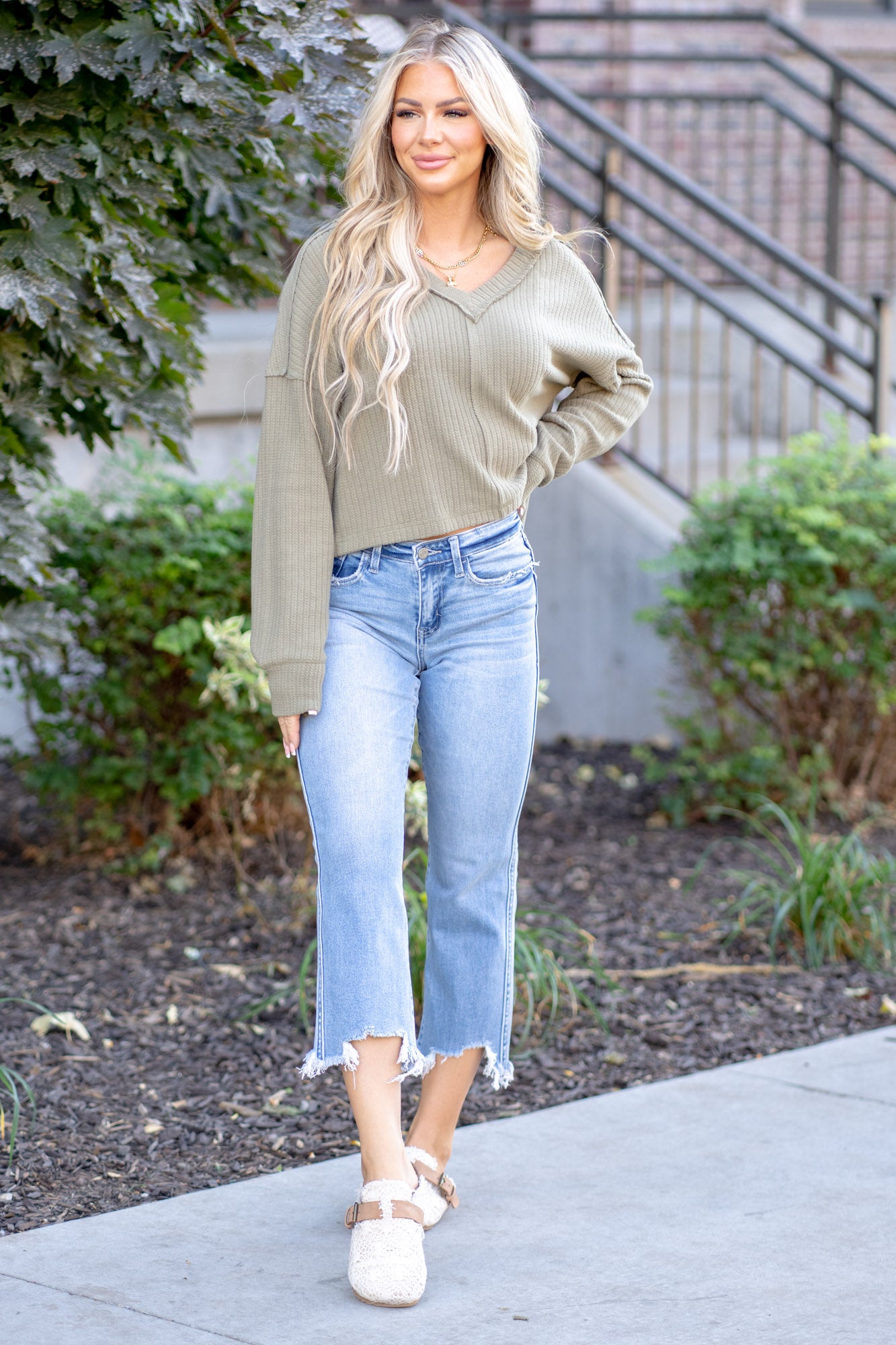 Amber Fields Mid Rise Raw Hem Straight Leg