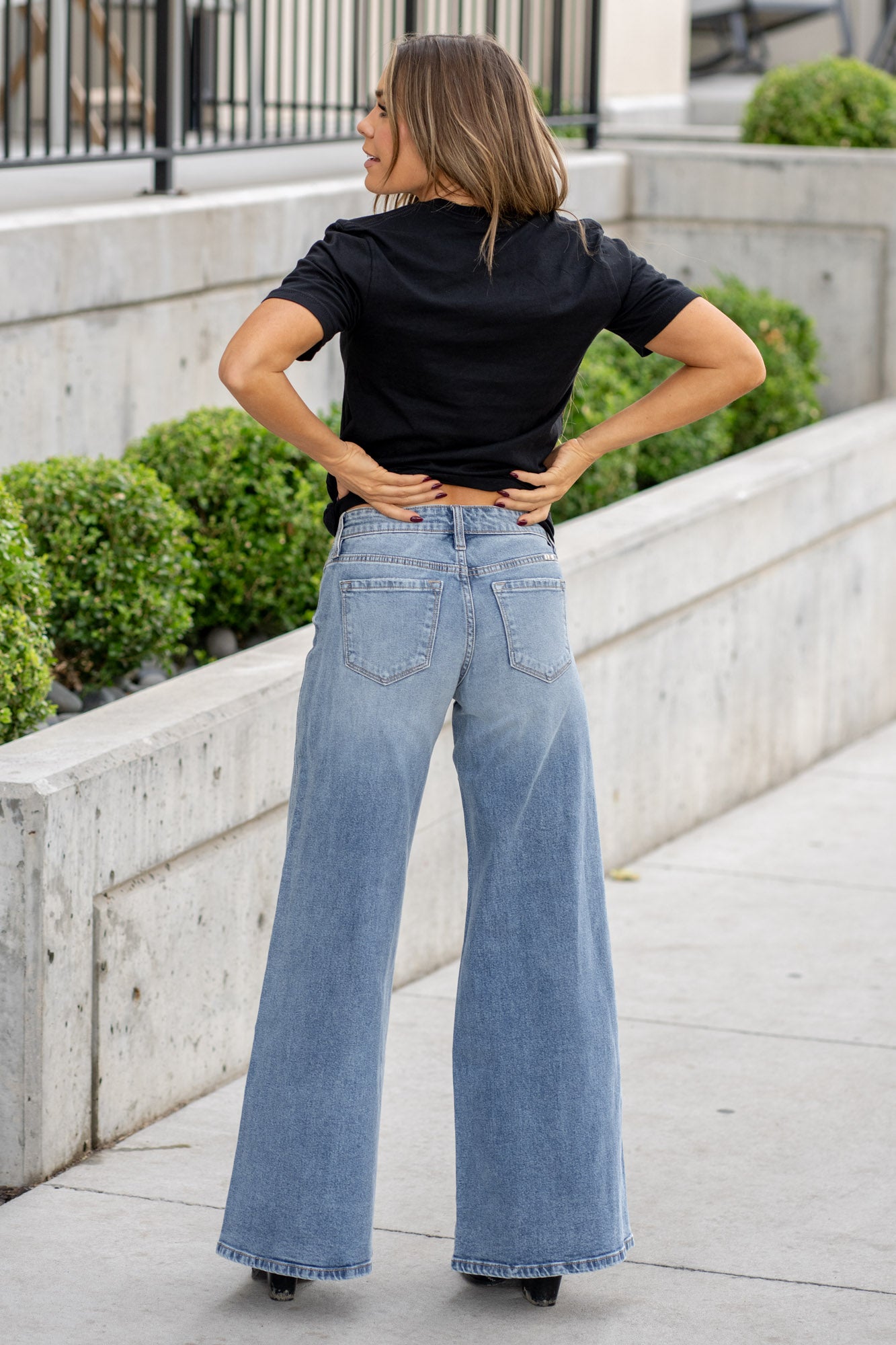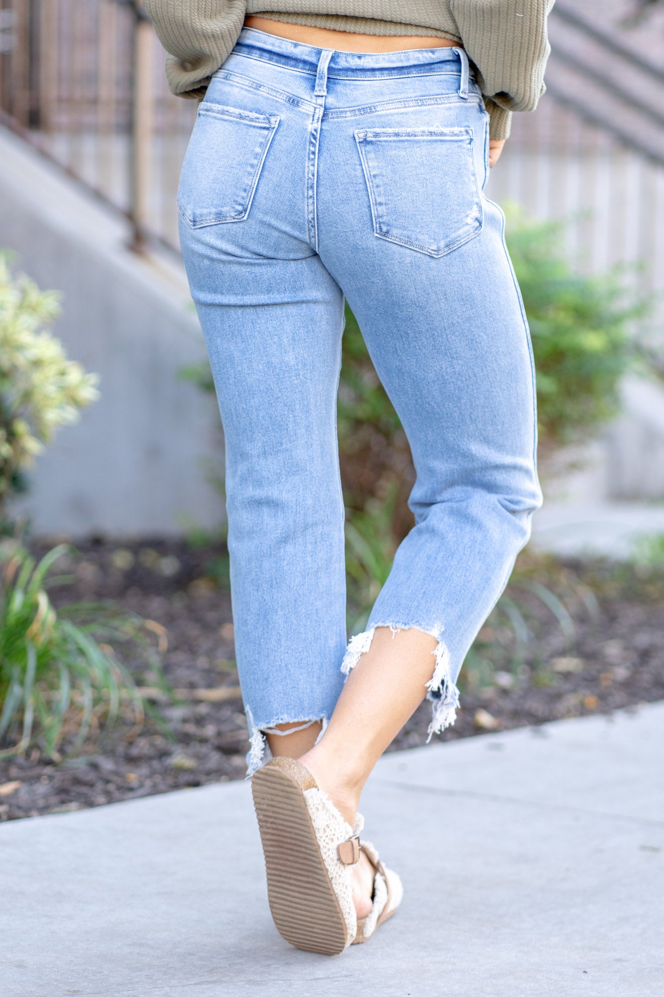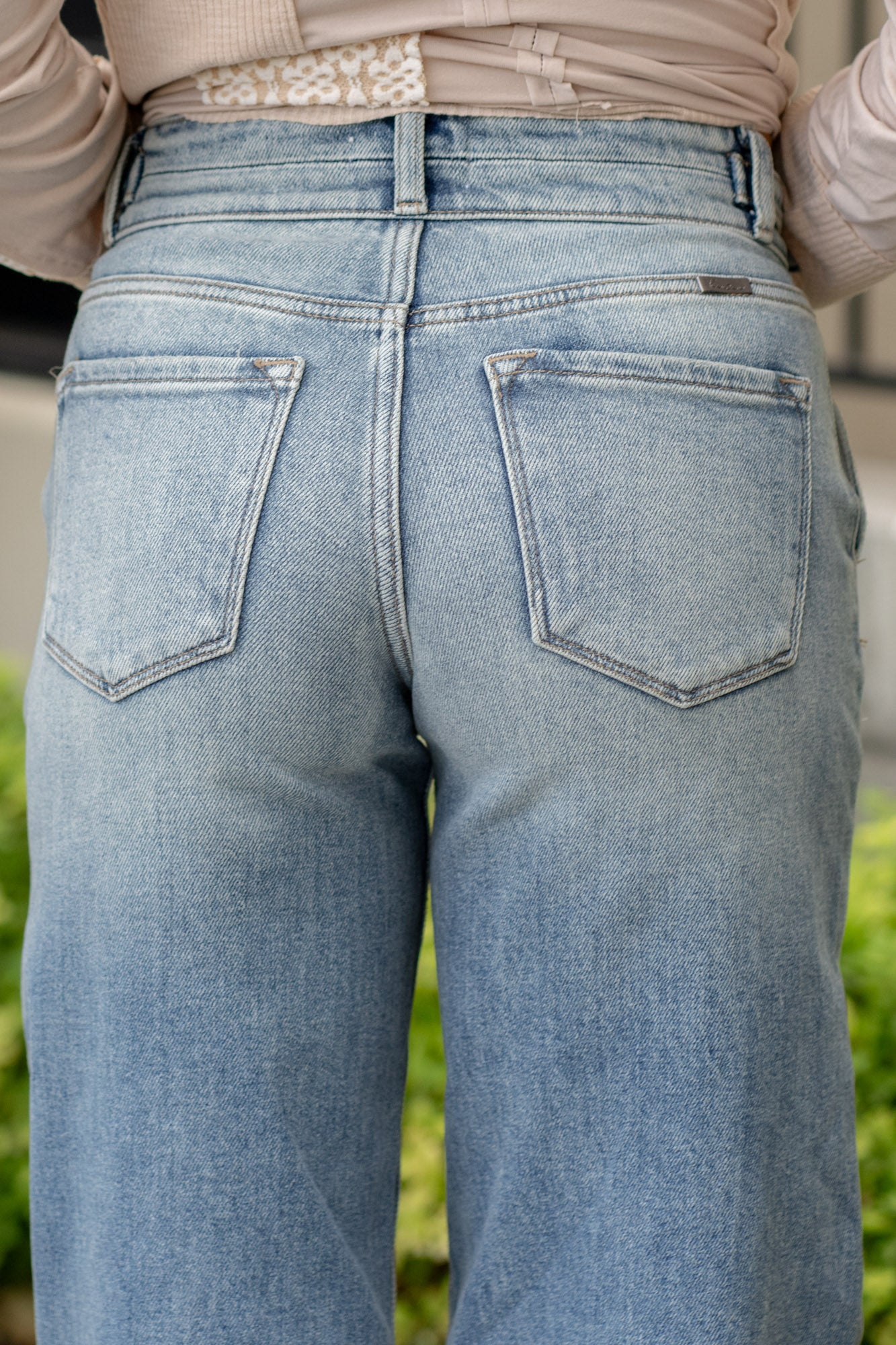 VERVET Glamour High Rise Boot Cut Jeans Light Blue Wash