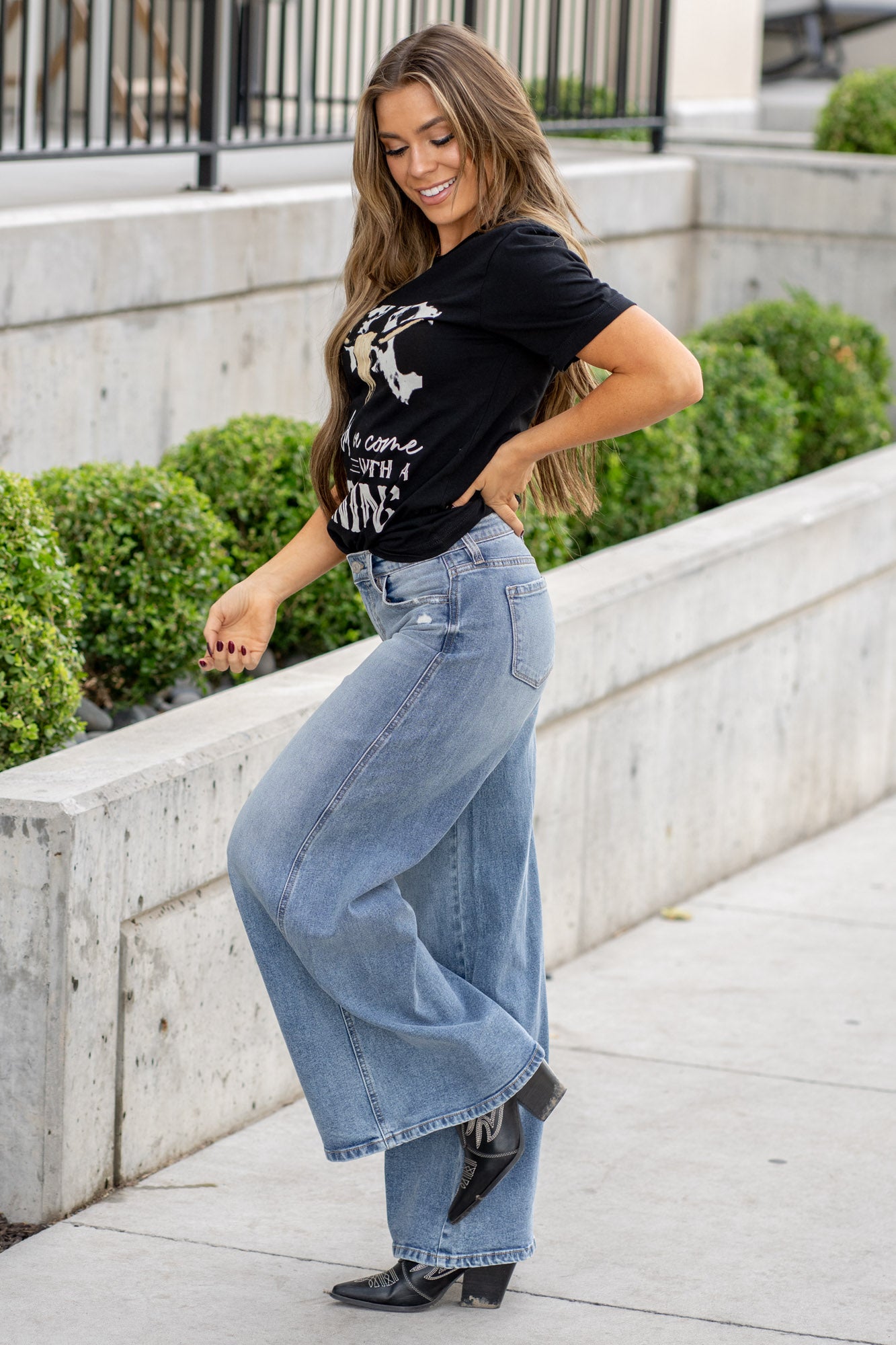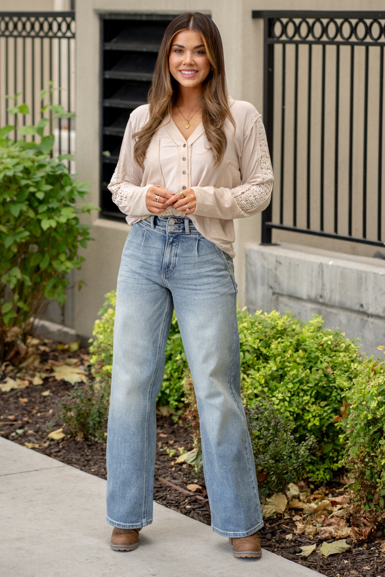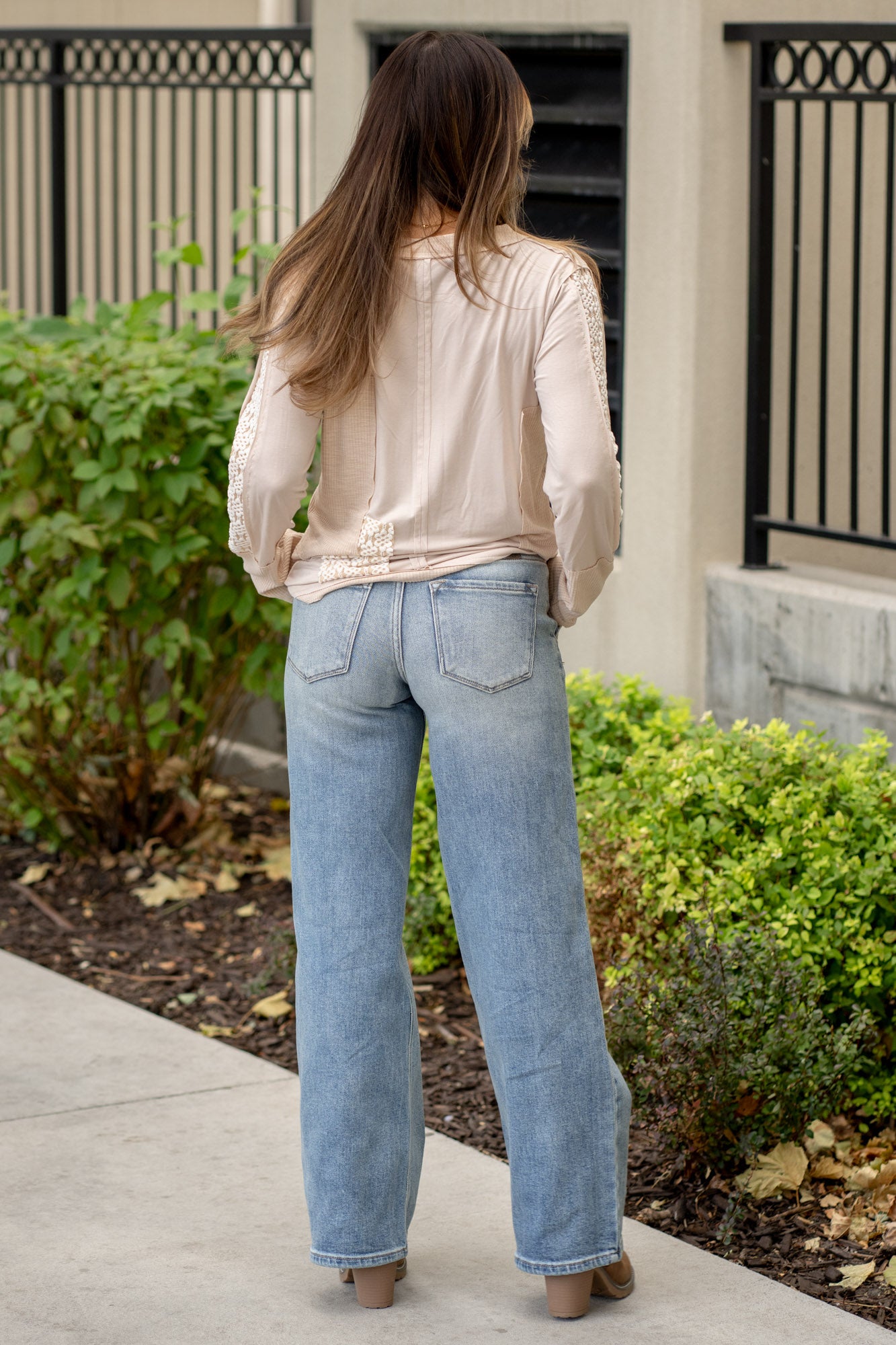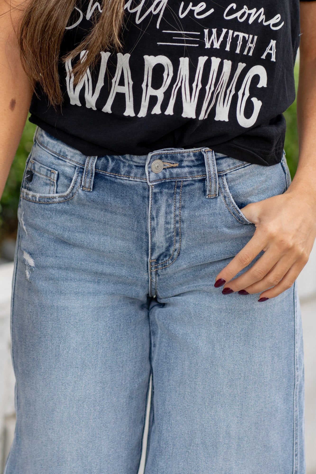 VERVET Glamour High Rise Boot Cut Jeans Light Blue Wash