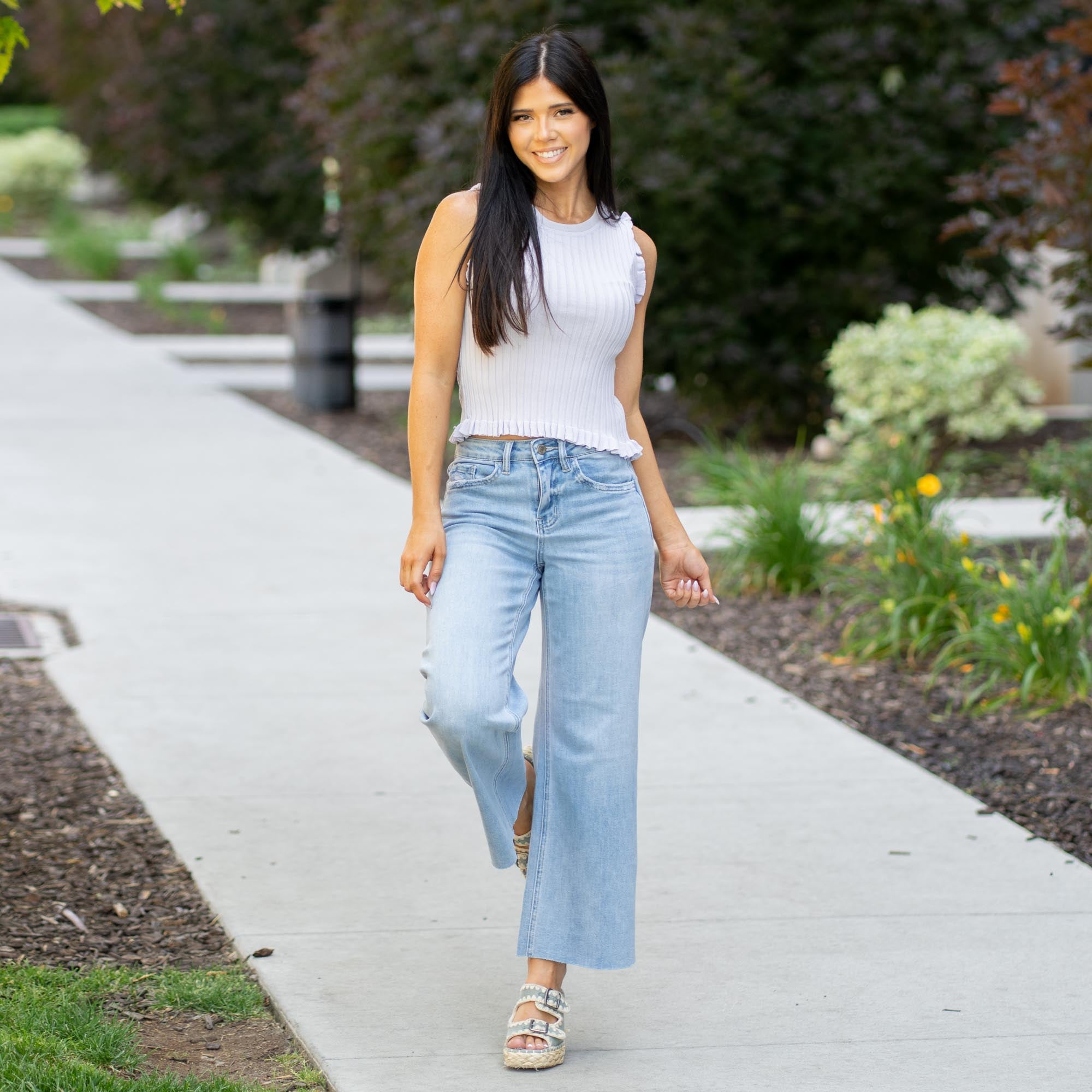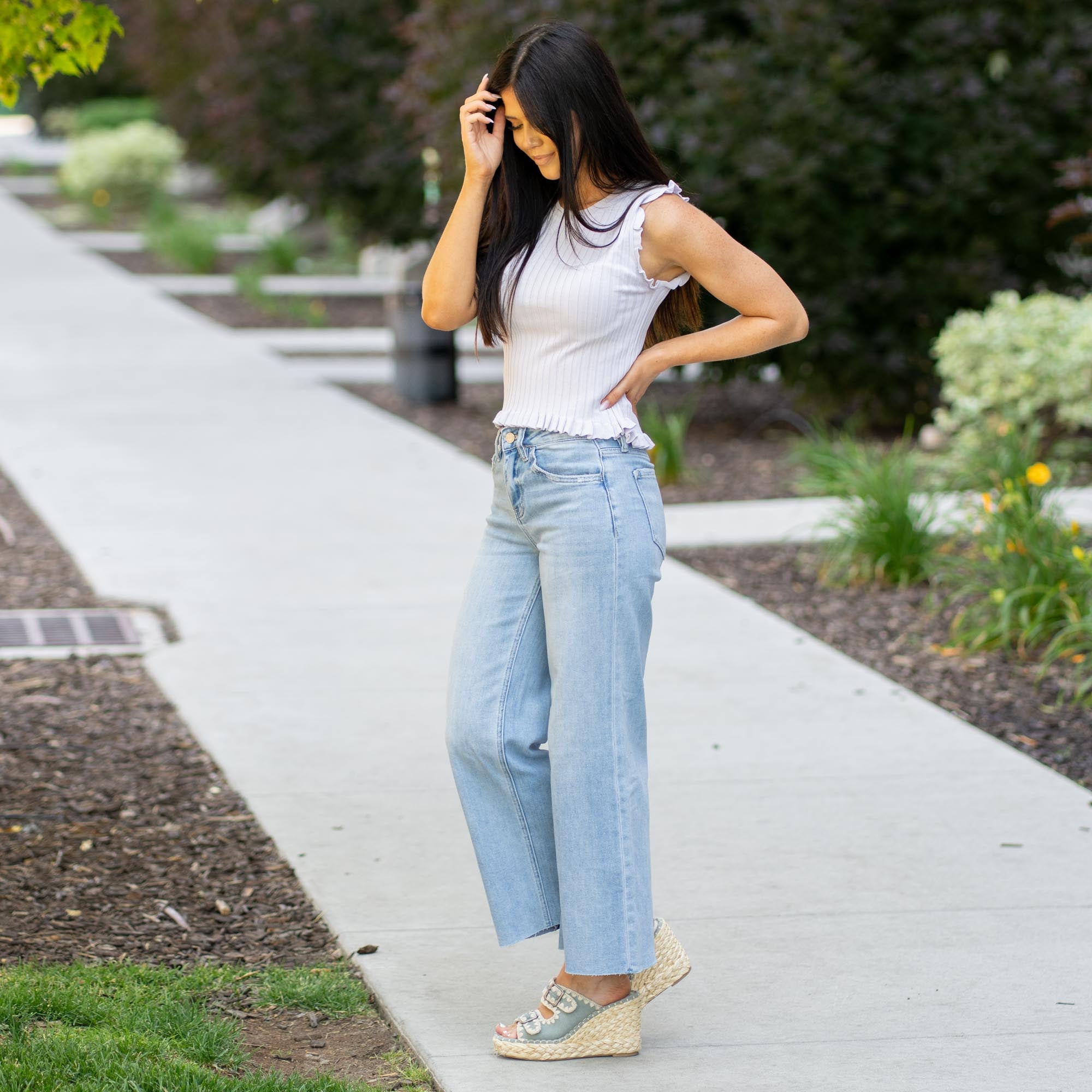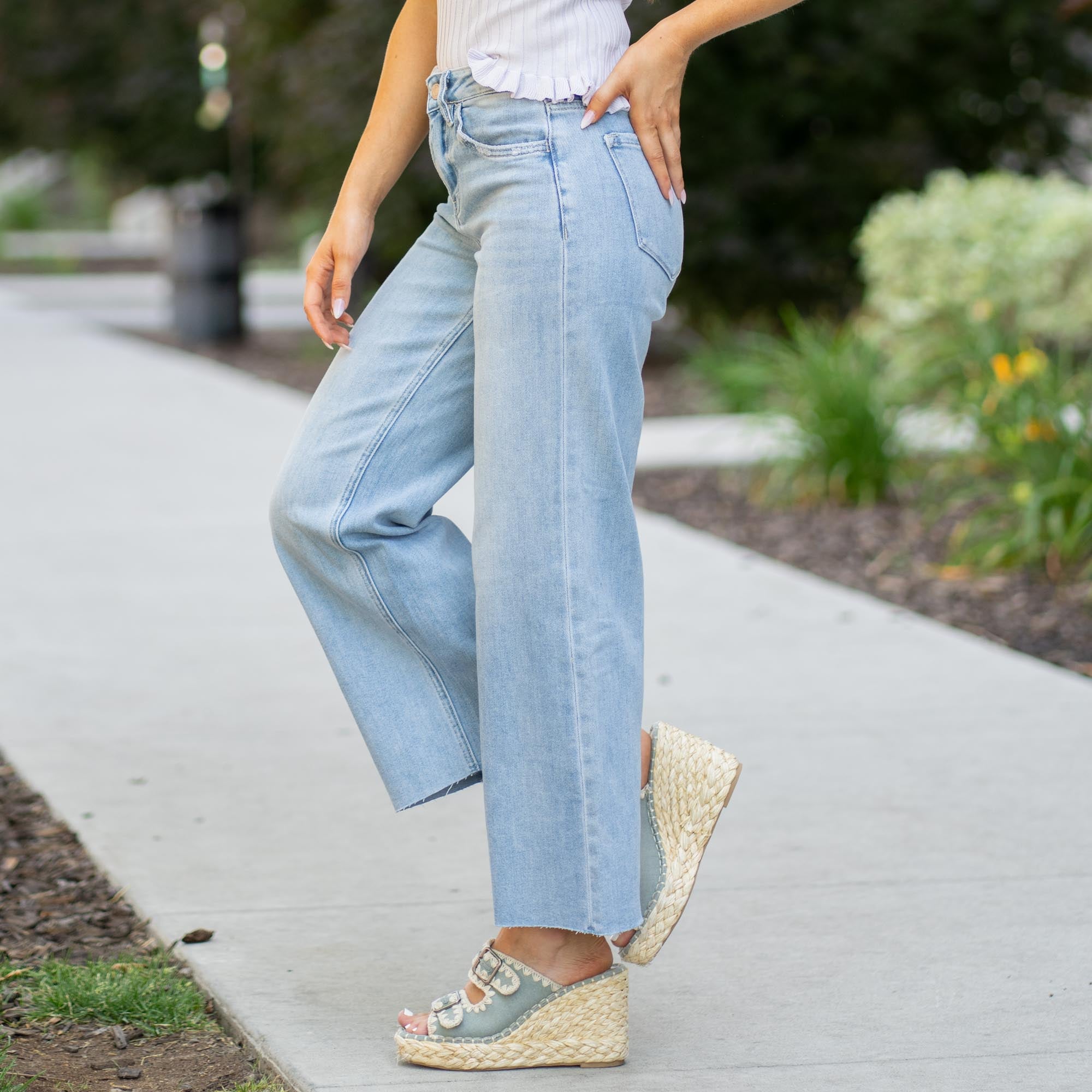 Judy High Rise Raw Hem Wide Leg
