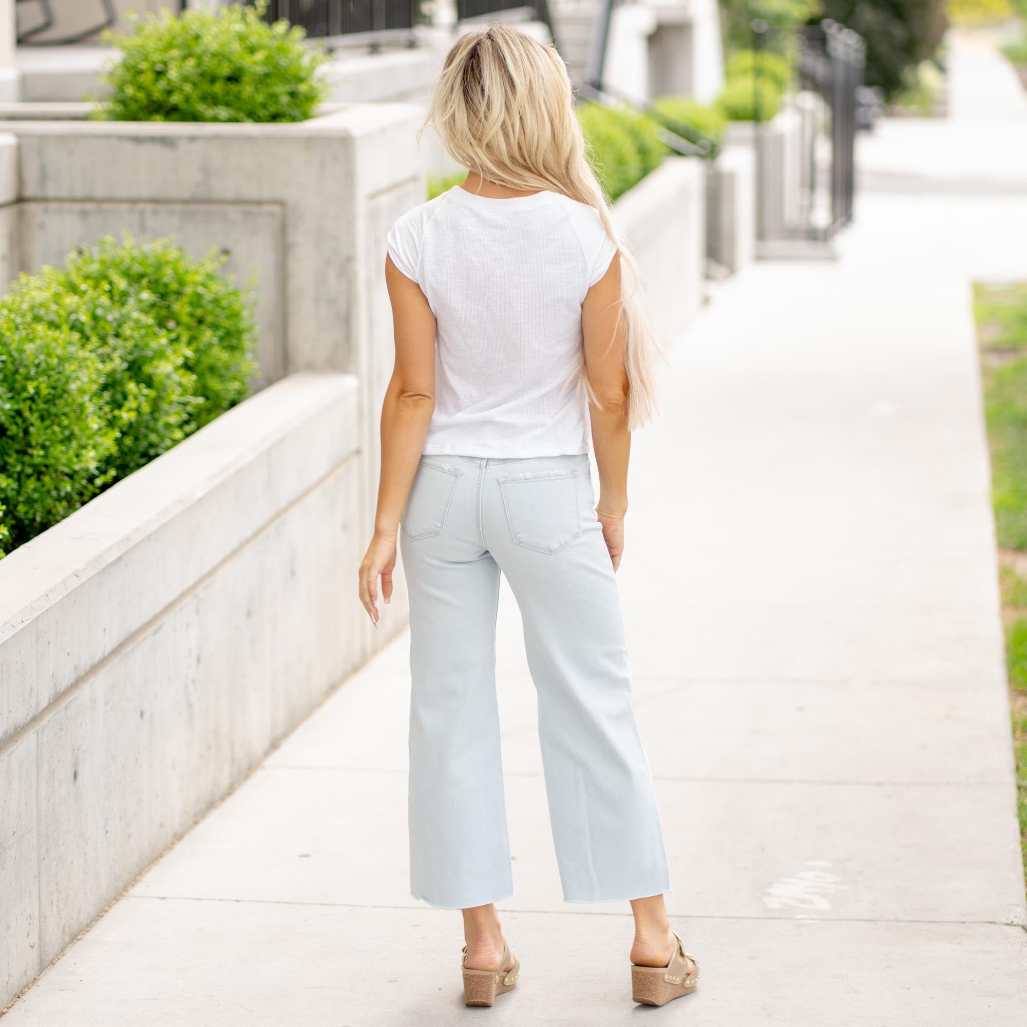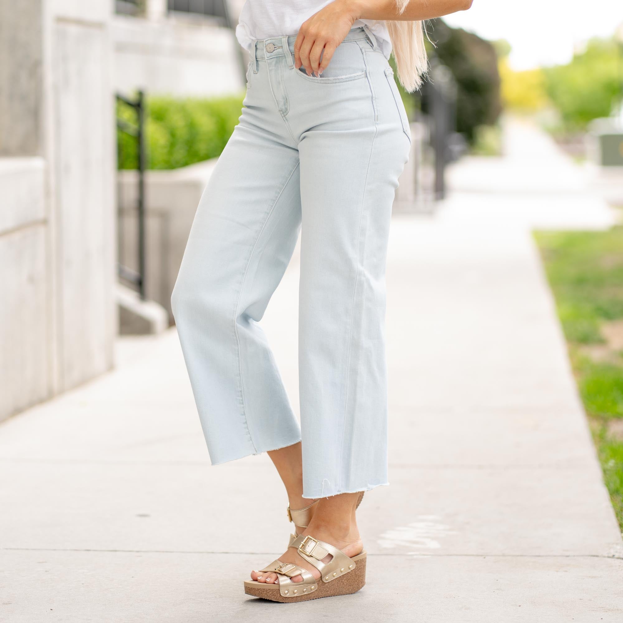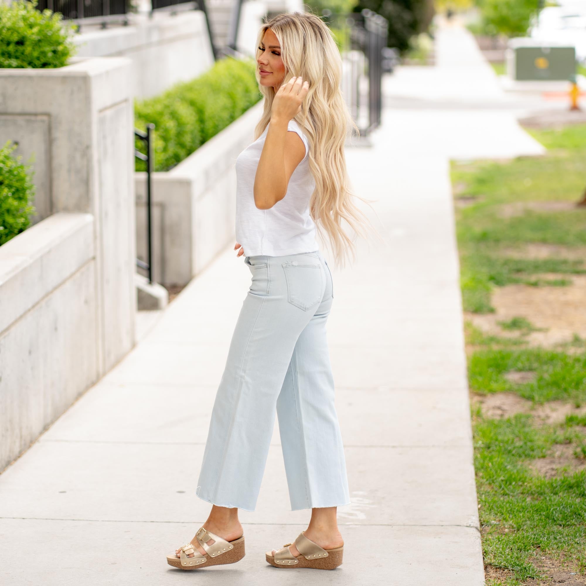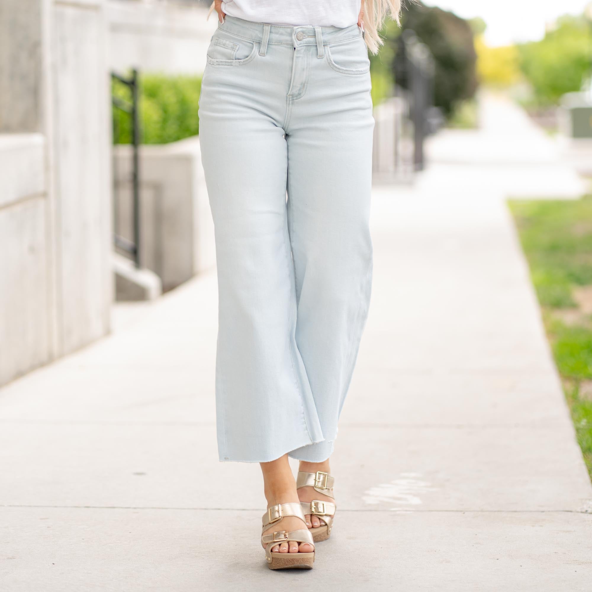 Enviably High Rise Clean Cut Raw Hem Ankle Slim Wide Jeans