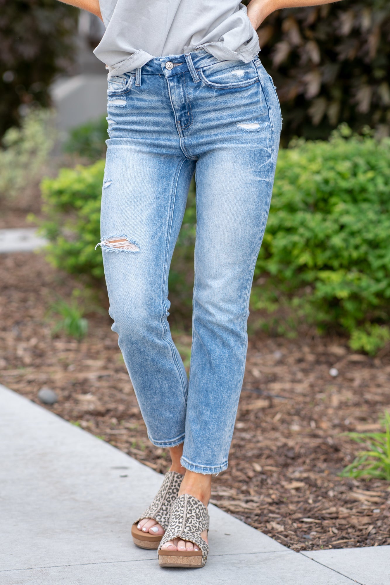 Boatload High Rise Distressed Hem Crop Straight Leg