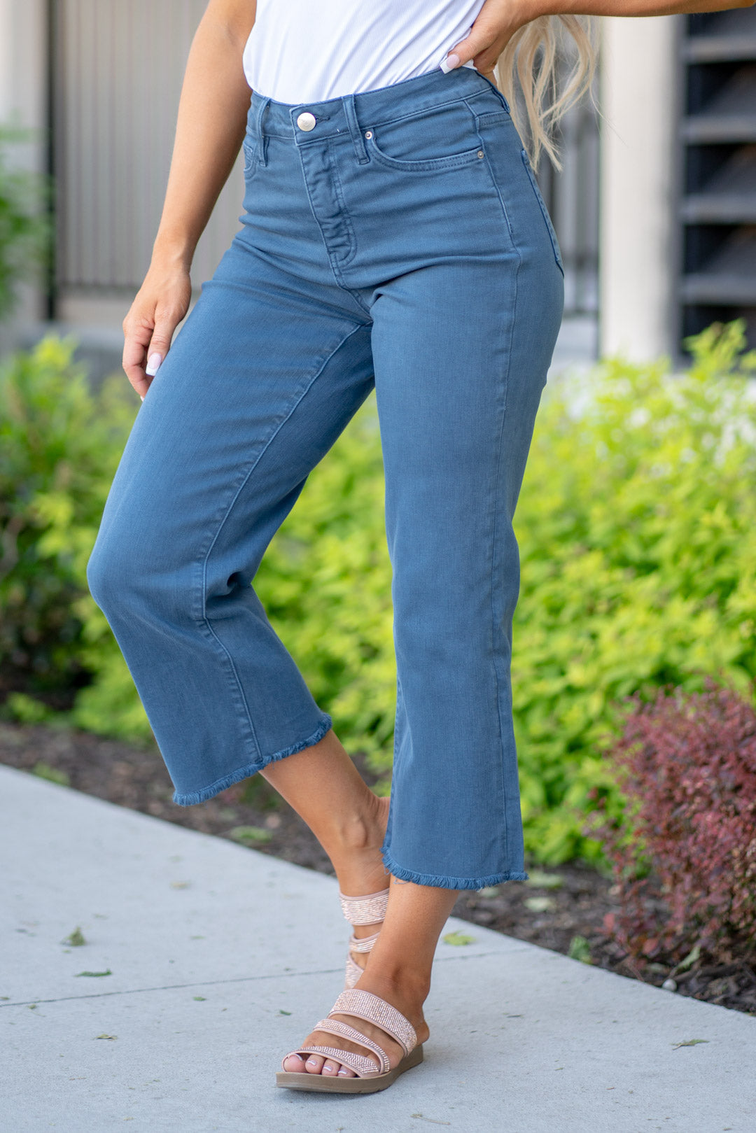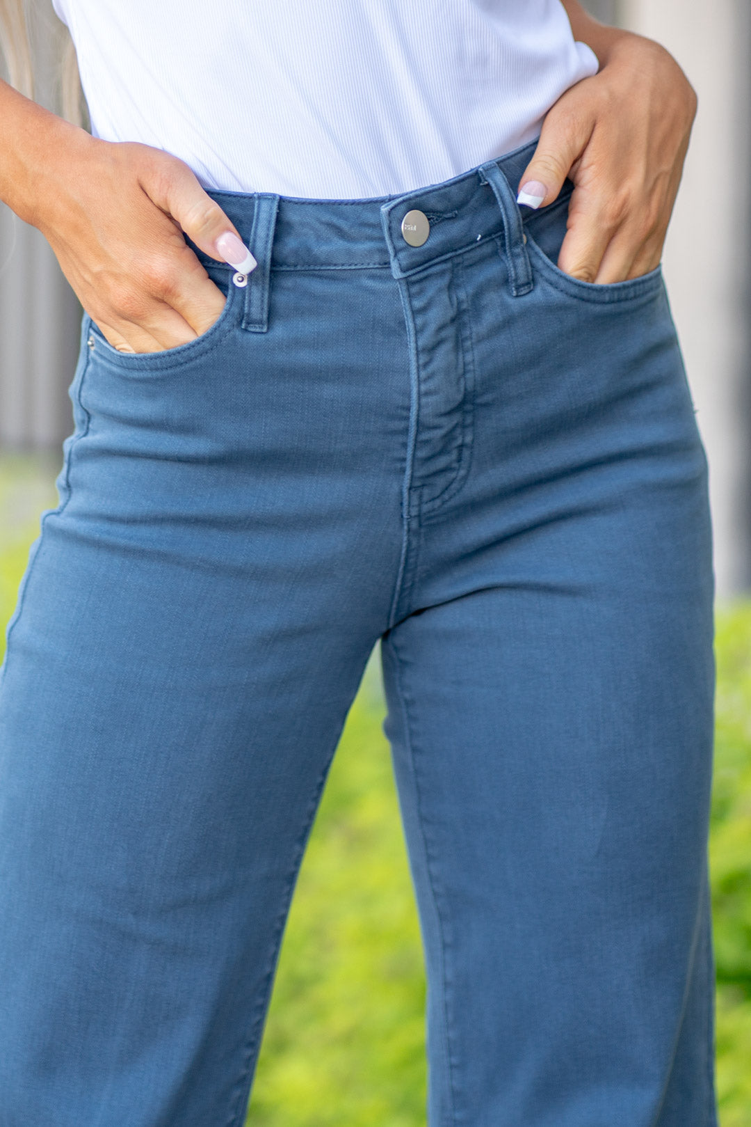 Chloe High Rise Tummy Control Top Cropped Straight Blue Slate Plus & Regular Sizes