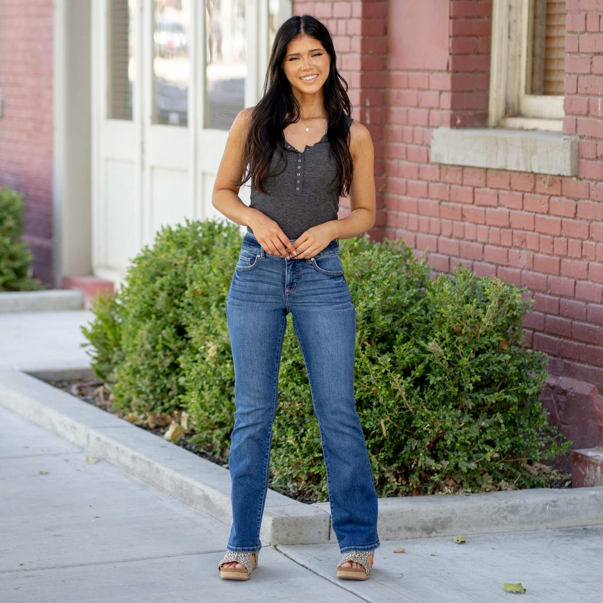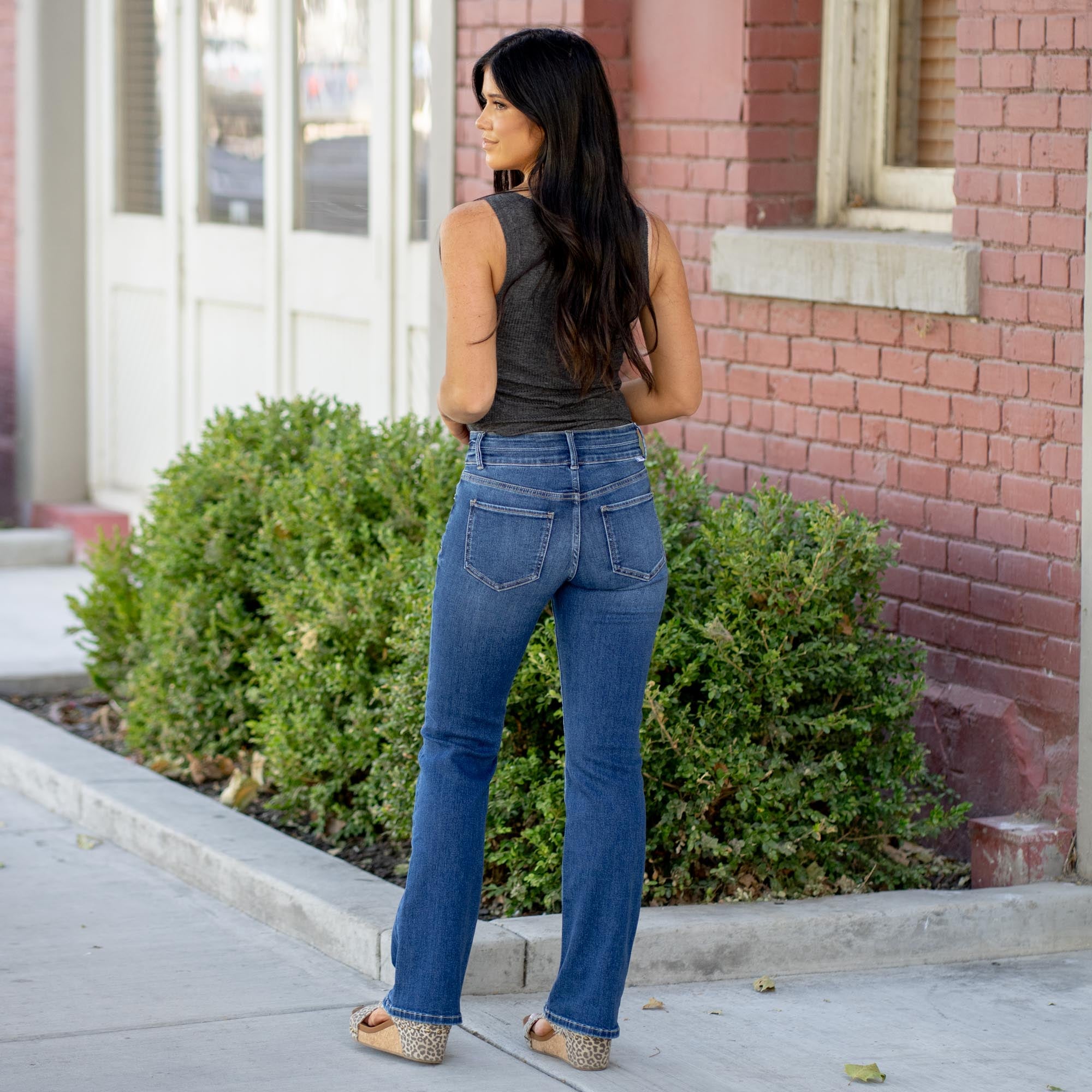 Where timeless meets tailored. The Mia Bootcut is your go-to jean for polished, everyday style. Designed with a flattering high-rise waist and classic bootcut leg, this style elongates your frame while complementing your curves—whether paired with heels, boots, or sneakers.
