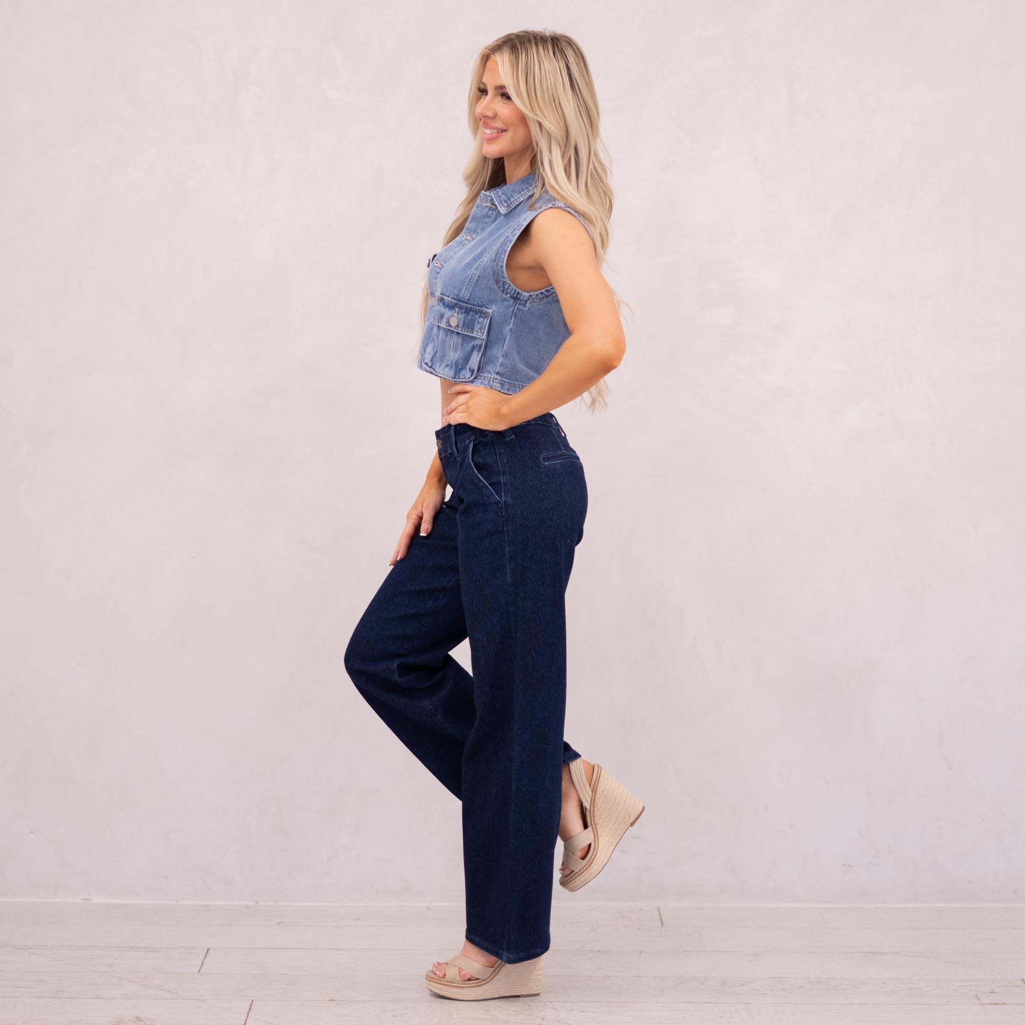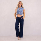 KanCan Kayla High Rise Trouser Wide Leg Dark Blue Wash